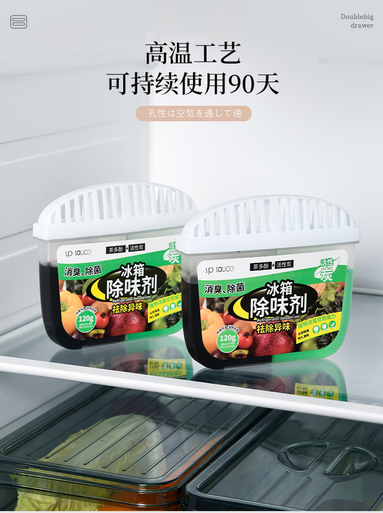冰箱除味剂 冰箱除味祛味剂除菌活性炭茶多酚消臭保鲜双效合一