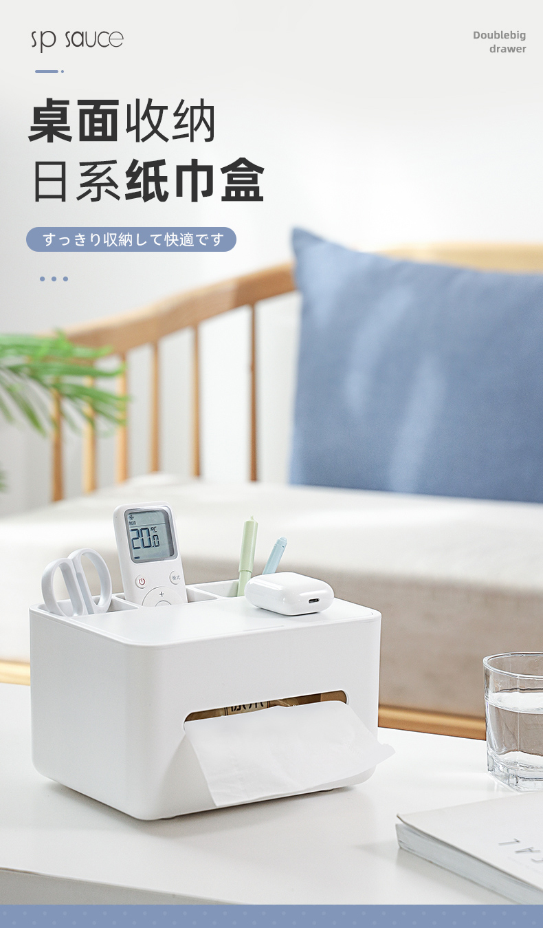 D 纸巾盒 纸巾盒客厅茶几抽纸盒家用桌面遥控器收纳盒多功能办公桌收纳盒