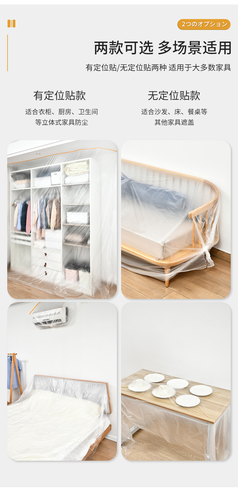 D 一次性防尘膜 有定位贴2.7*20m 一次性家具防尘布防尘膜罩塑料膜装修家具保护膜床沙发遮盖防灰遮尘布