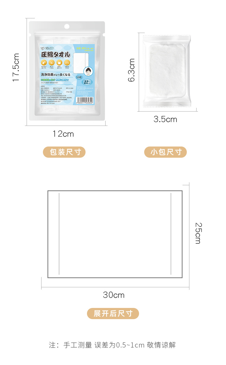 压缩毛巾 25*30cm 10枚 一次性糖果面巾压缩毛巾独立装户外旅行便携洁面清洗巾