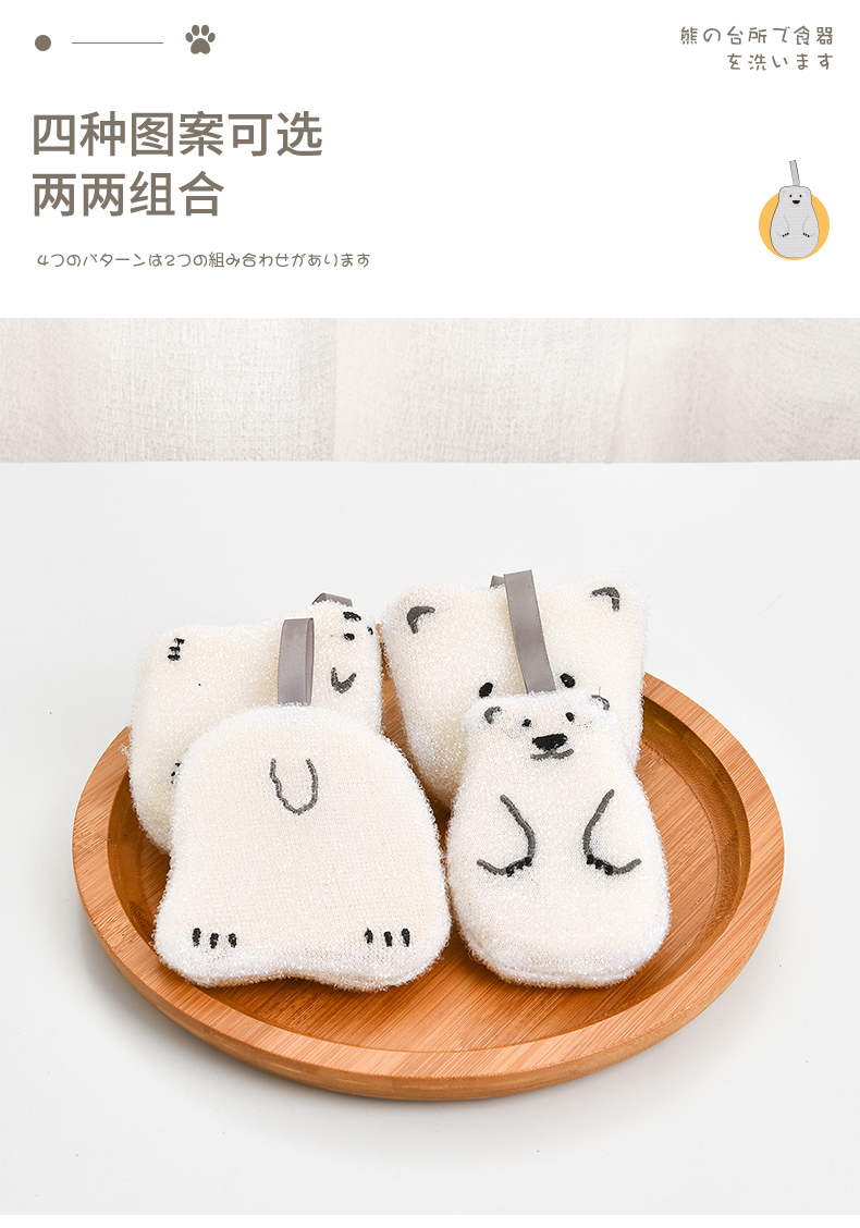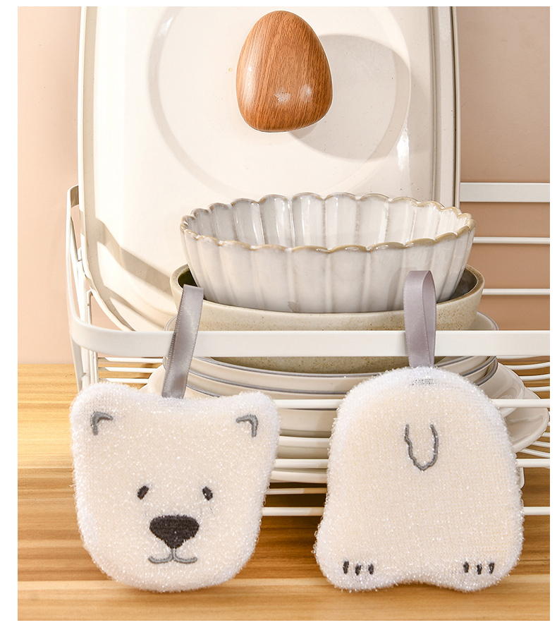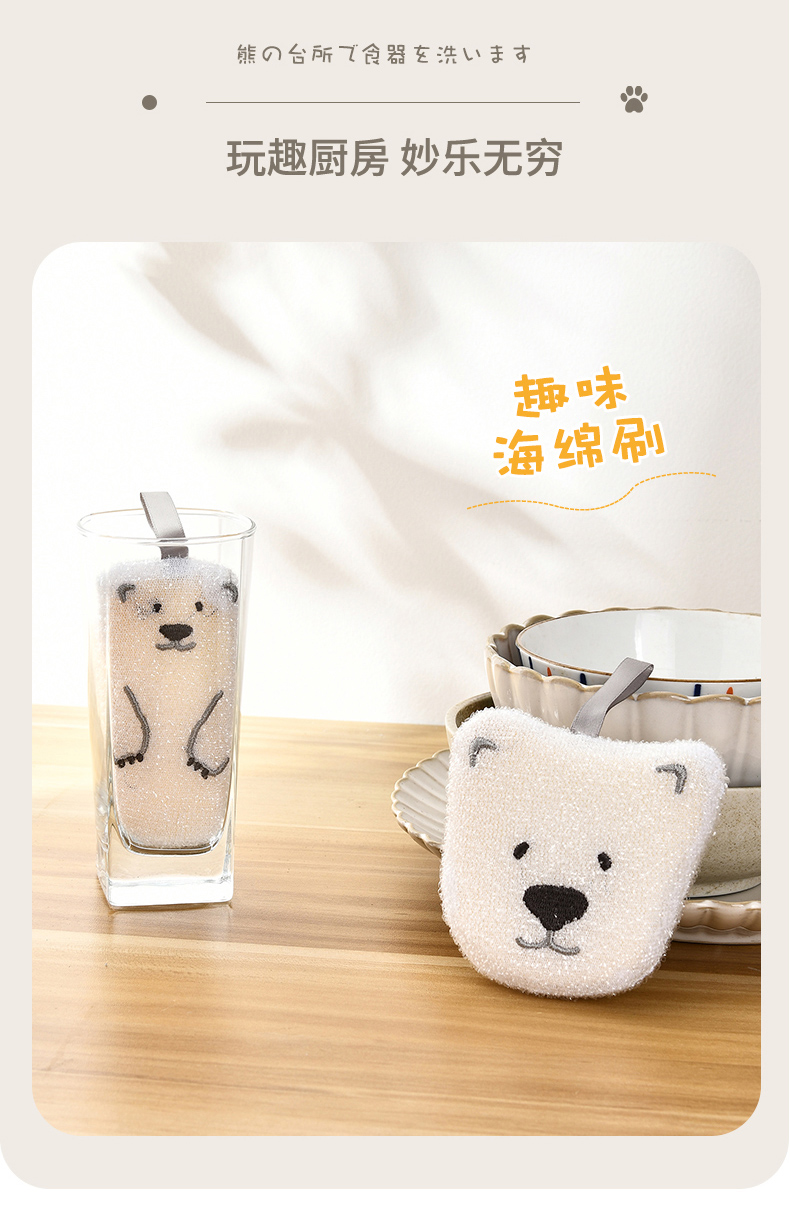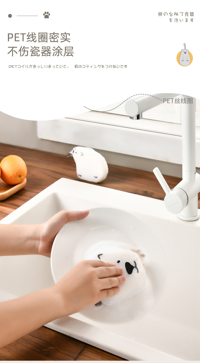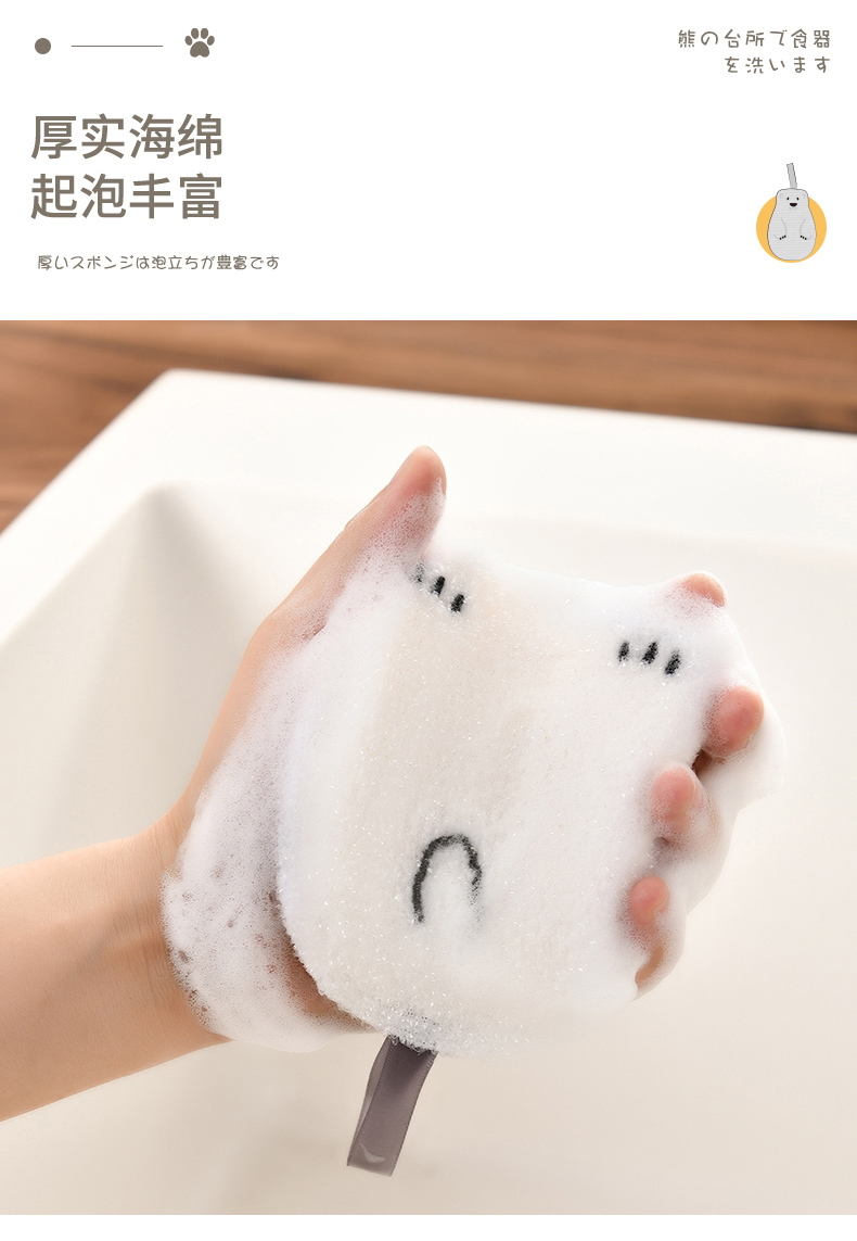 D小熊洗碗海绵 2枚 小熊海绵擦可爱去污渍海棉卡通洗杯子清洁海绵厨房洗碗刷锅百洁布