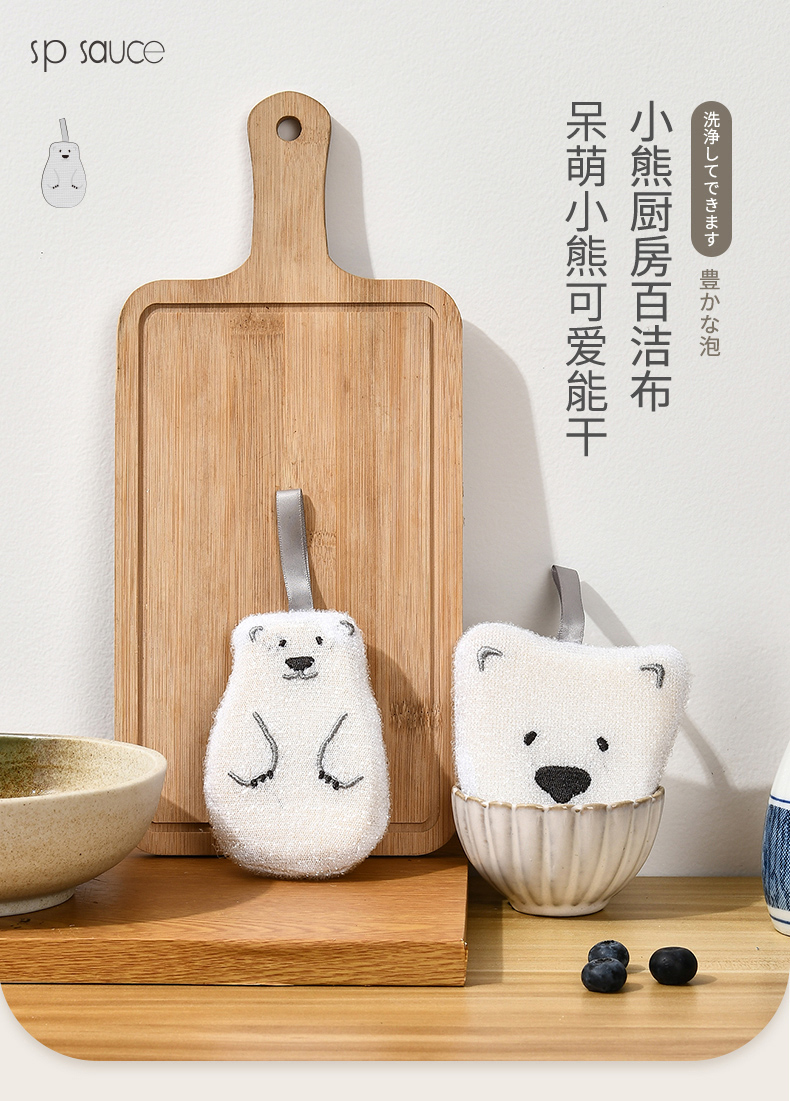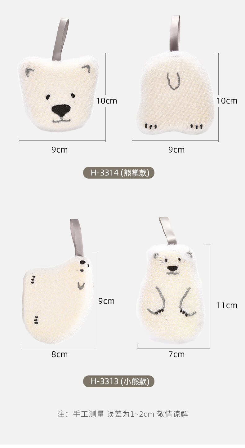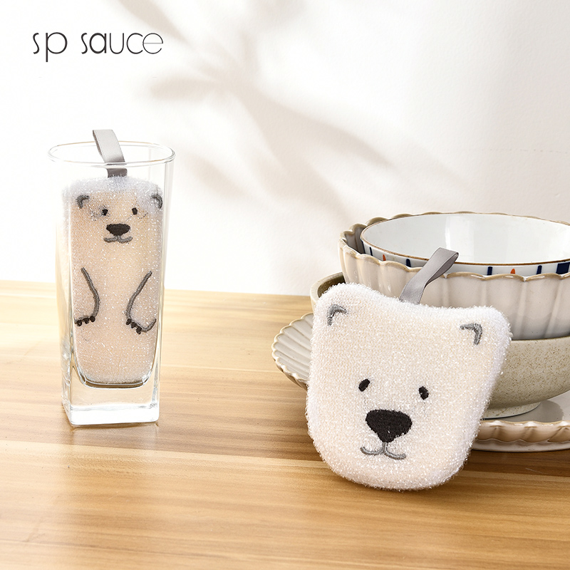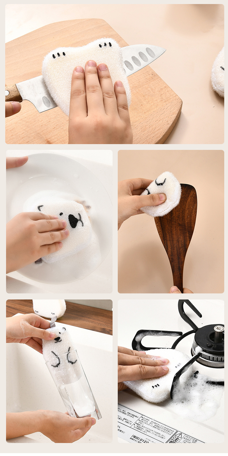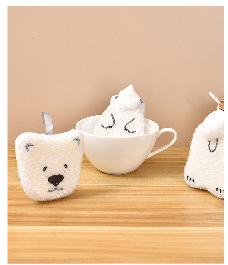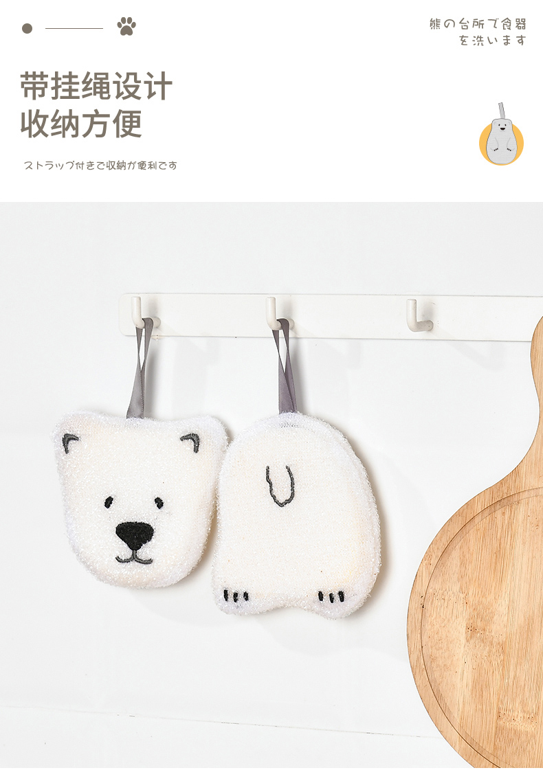 D小熊洗碗海绵 2枚 小熊海绵擦可爱去污渍海棉卡通洗杯子清洁海绵厨房洗碗刷锅百洁布