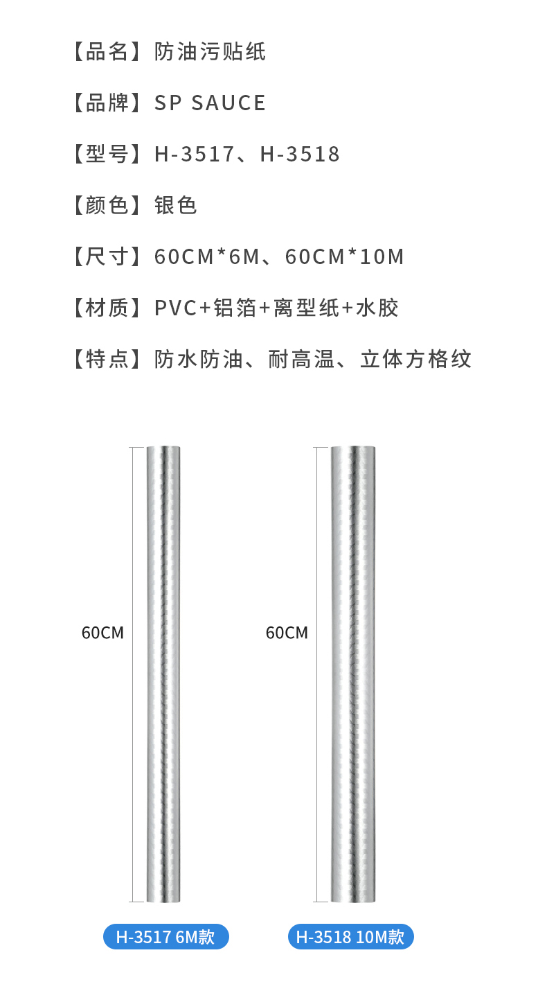 D 铝箔防油污贴纸 60cm*10m 菱形纹 橱柜垫纸自粘防水防潮厨房防油贴纸铝箔纸锡纸柜灶台用