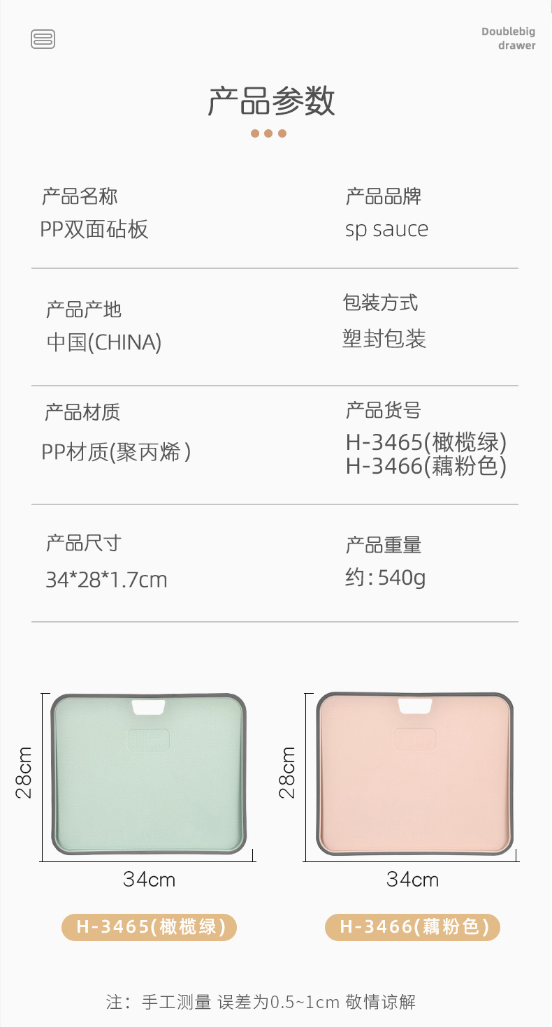 PP双面砧板 切水果砧板加厚双面切菜板粘板厨房家用刀板塑料小案板