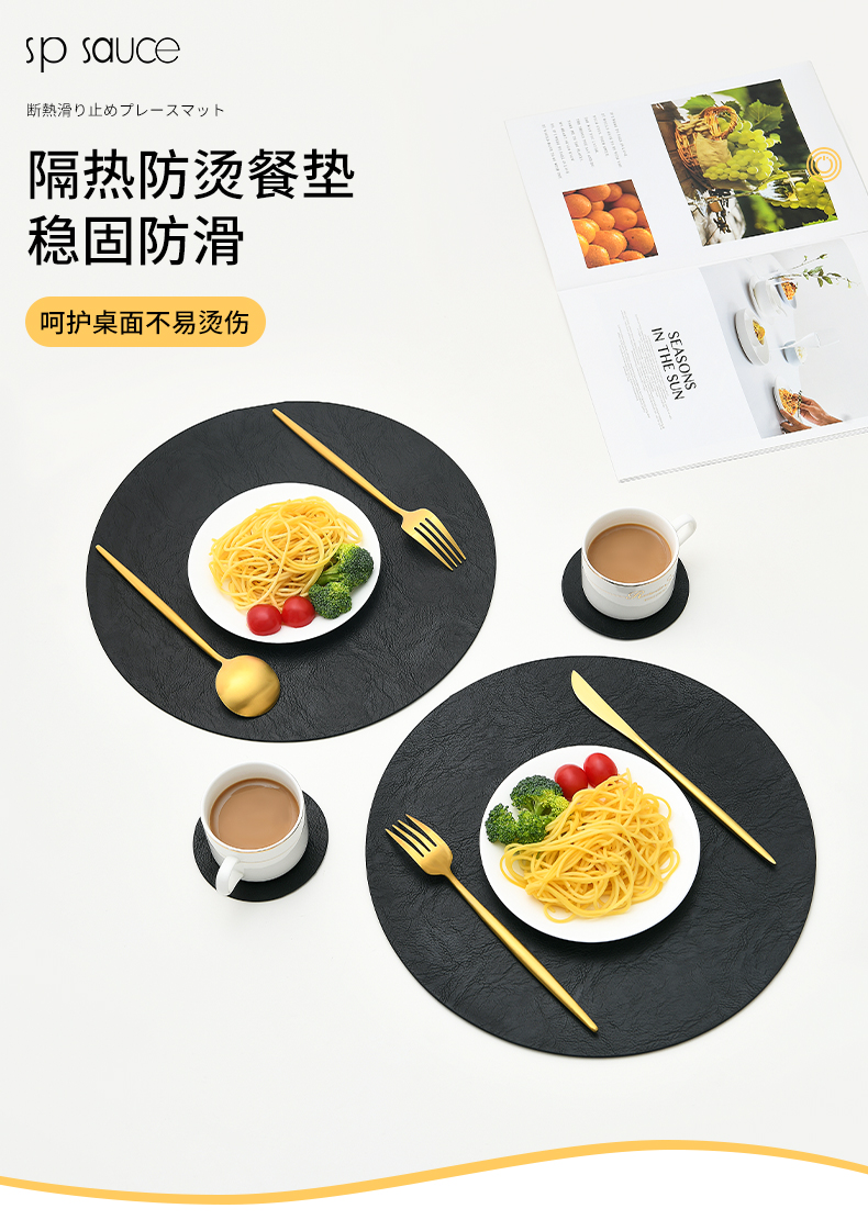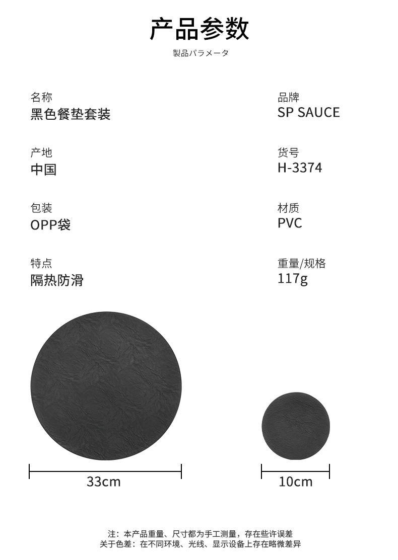 Y 黑色餐垫套装 碗垫子隔热垫餐桌垫防烫杯垫家用厨房耐高温防滑汤垫