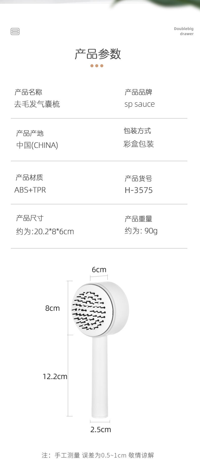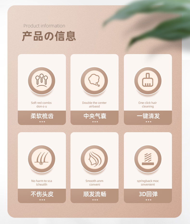 D 去毛发气囊梳 长柄按摩梳子蓬松卷发梳造型气垫梳便携美发气囊梳子