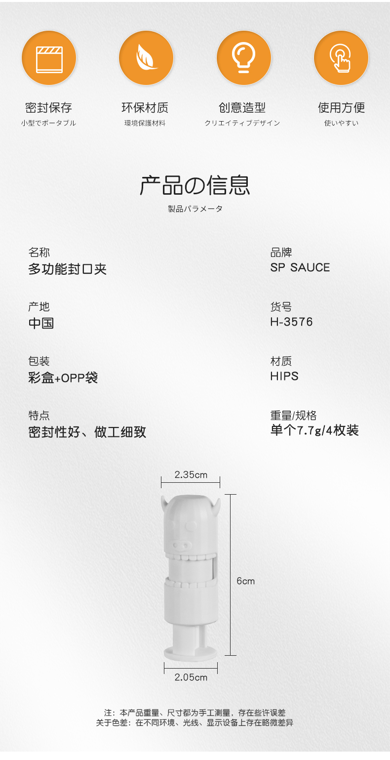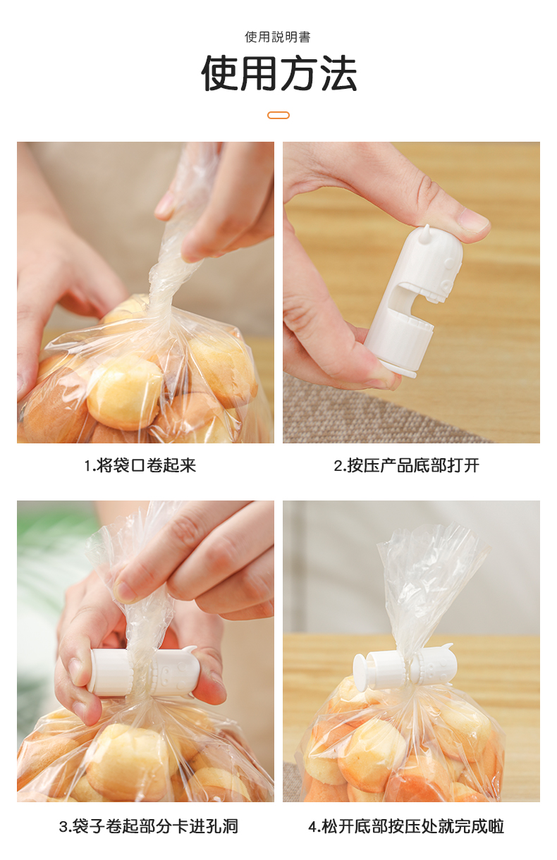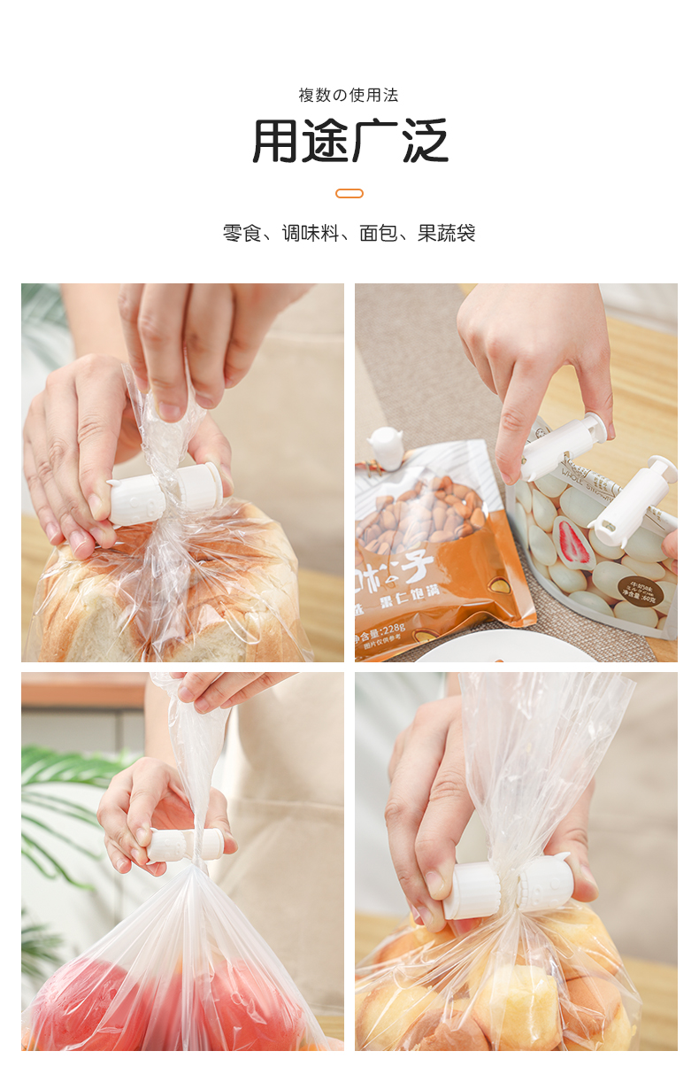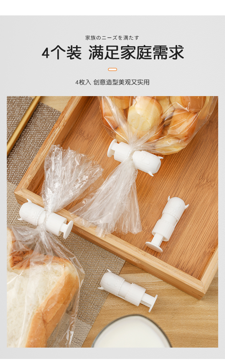 多功能封口夹(4枚入) 零食封口夹防潮保鲜茶叶奶粉密封夹厨房食品夹