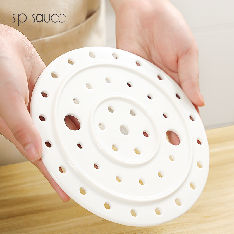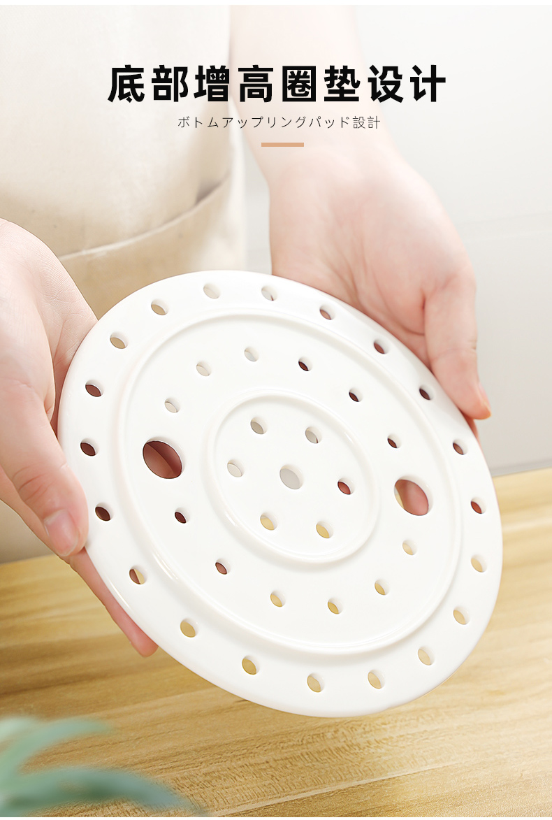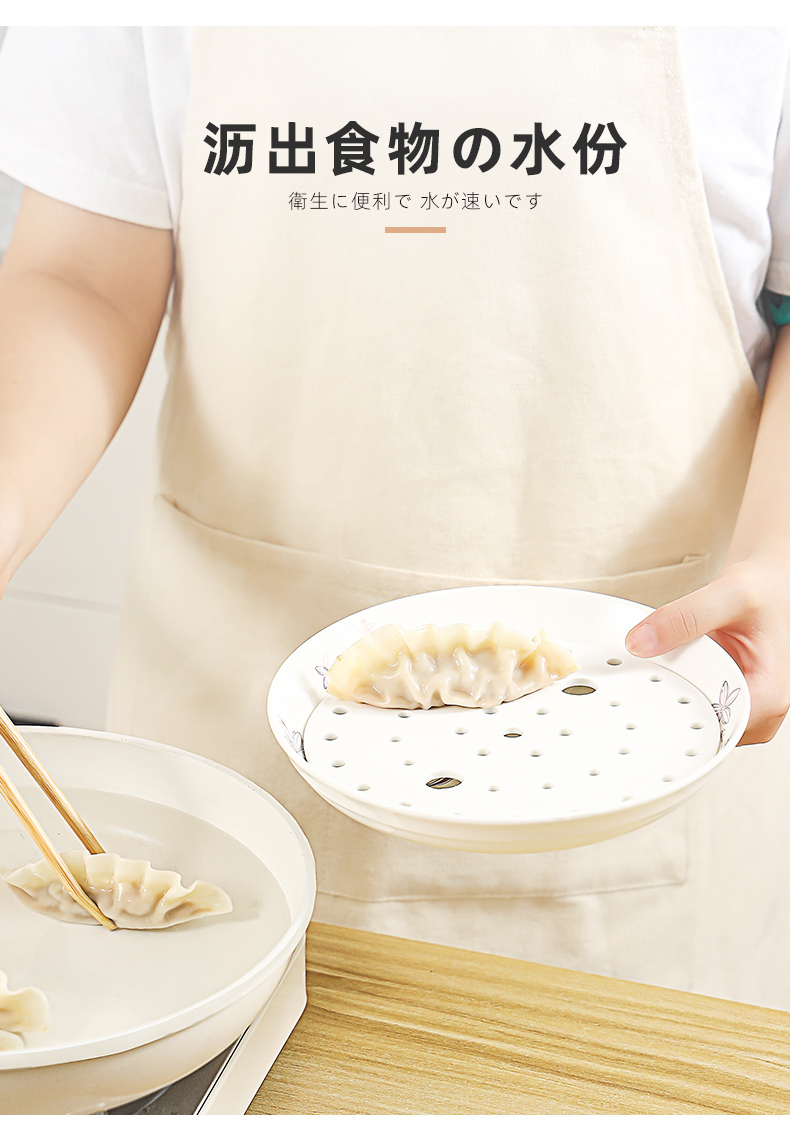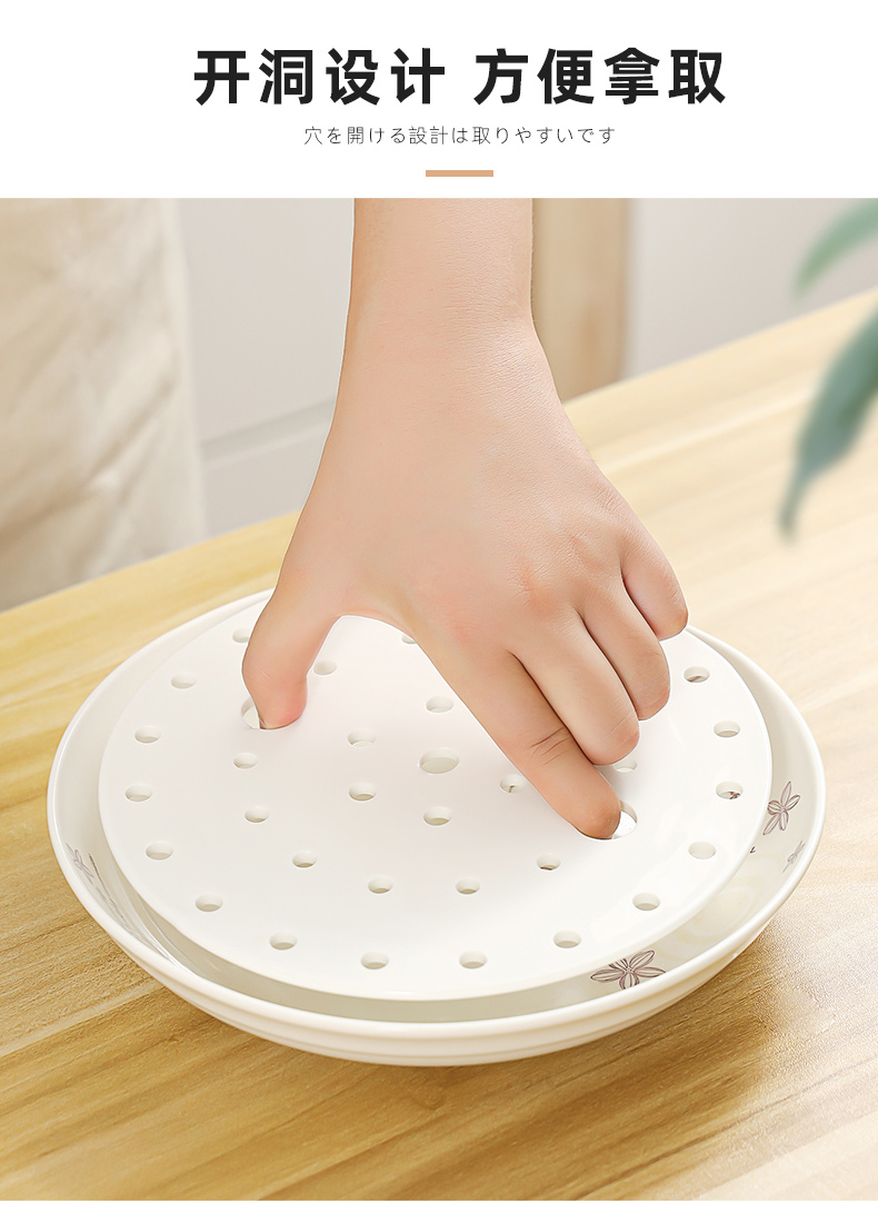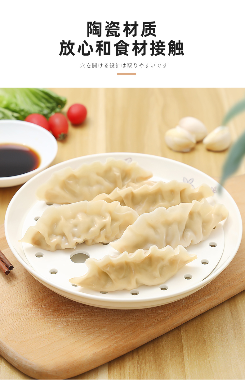 D 陶瓷沥水盘 家用陶瓷多孔蒸盘圆形饺子盘沥水盘蒸包子蒸海鲜蒸片蒸格隔水蒸架