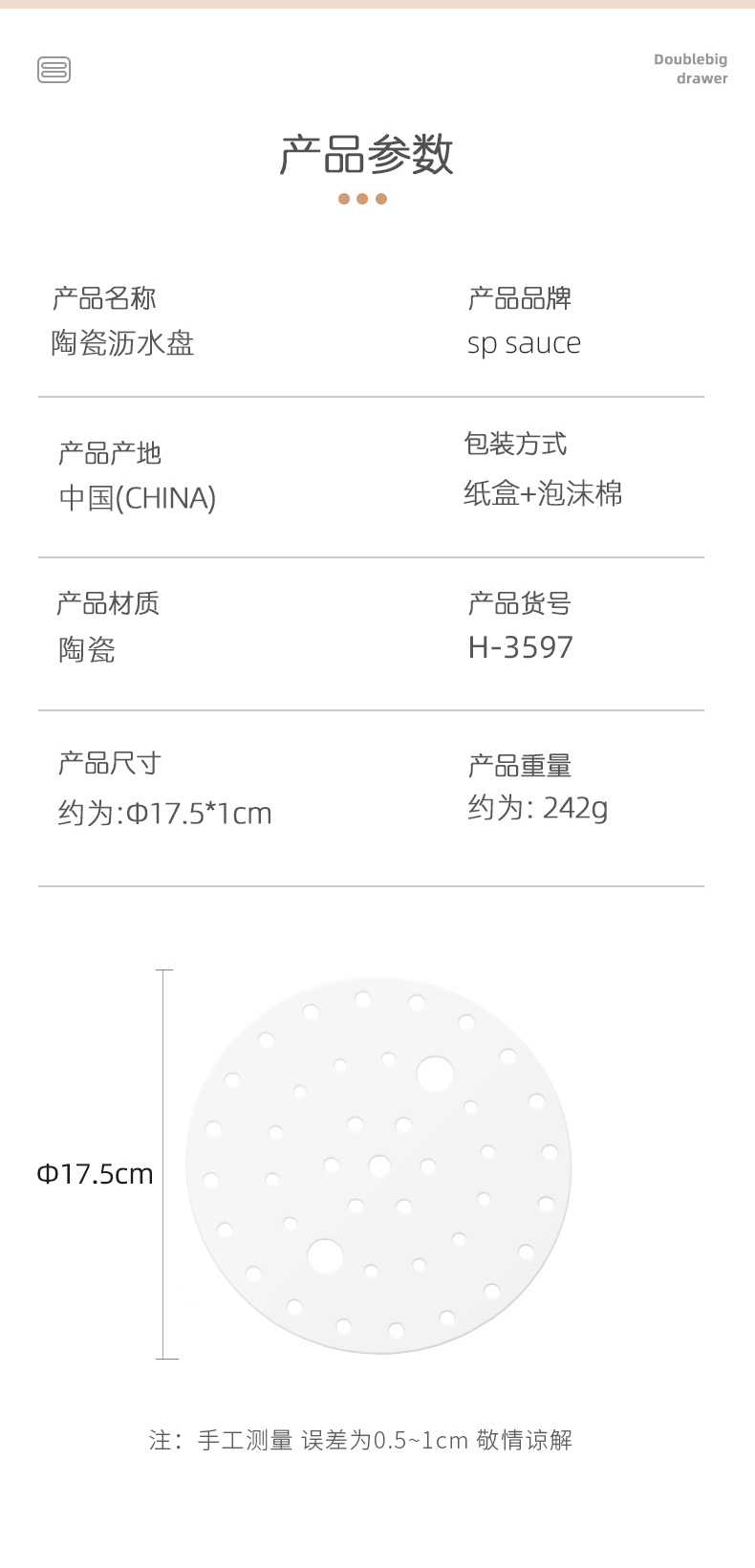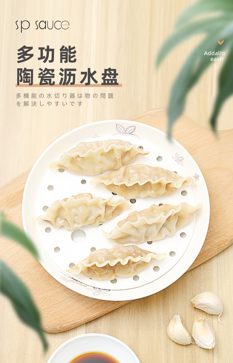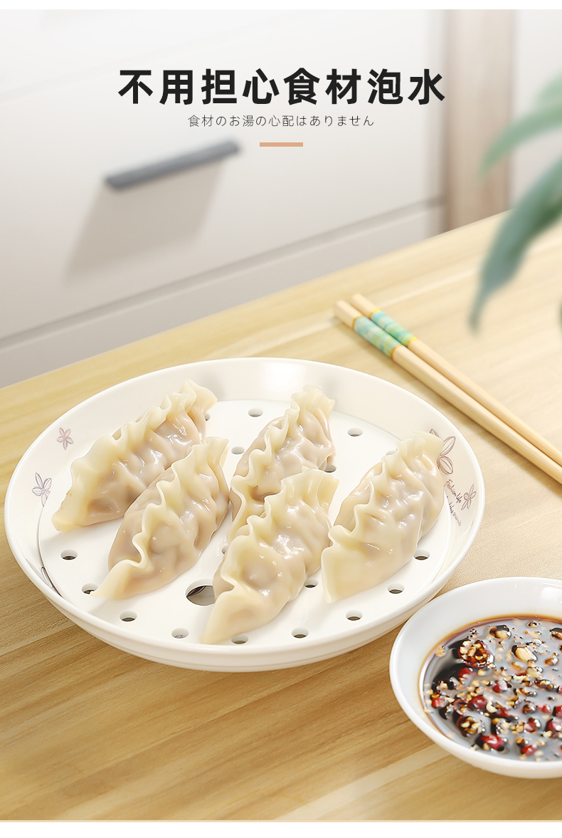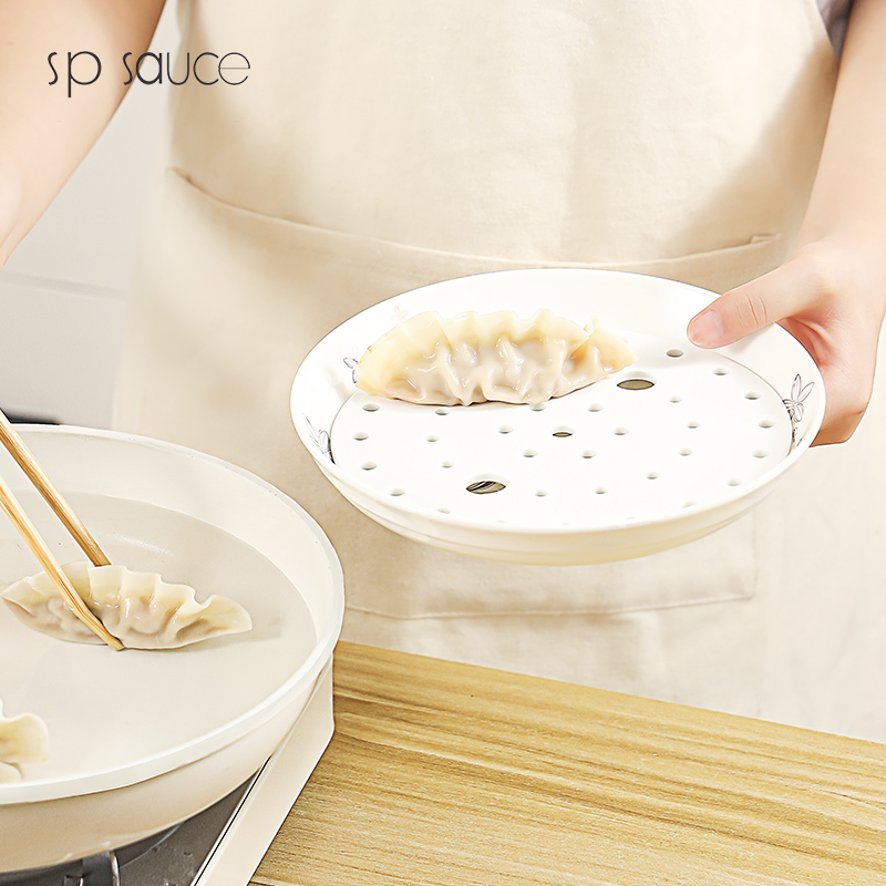 D 陶瓷沥水盘 家用陶瓷多孔蒸盘圆形饺子盘沥水盘蒸包子蒸海鲜蒸片蒸格隔水蒸架