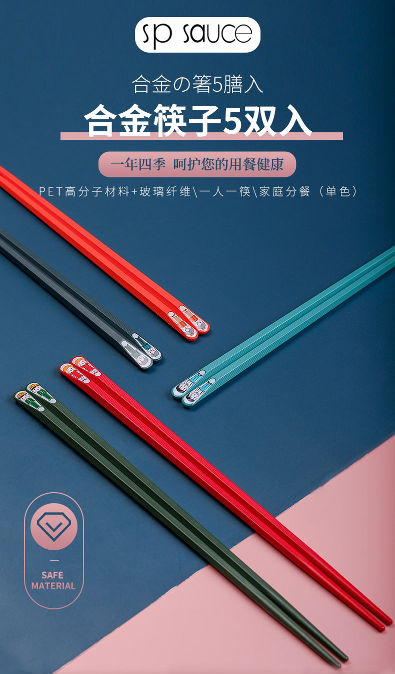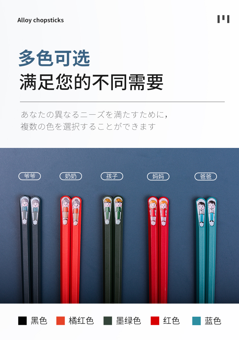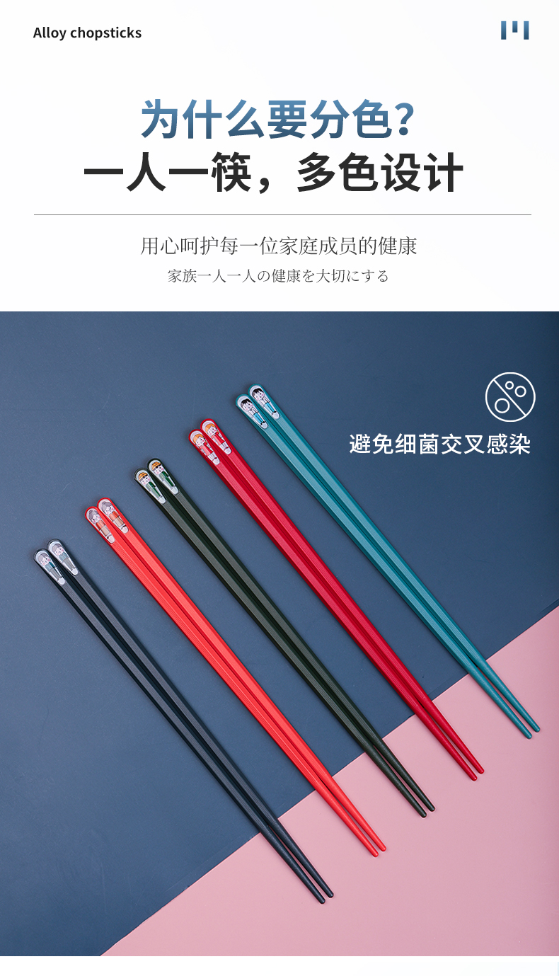 合金筷子5双入(人物款) 筷子家用合金防滑一人一筷人物筷子