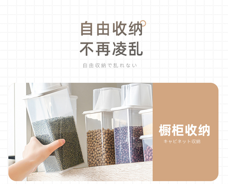 D 刻度储物罐 中号 塑料厨房五谷储物罐小号豆子干果收纳盒粮食储存罐子