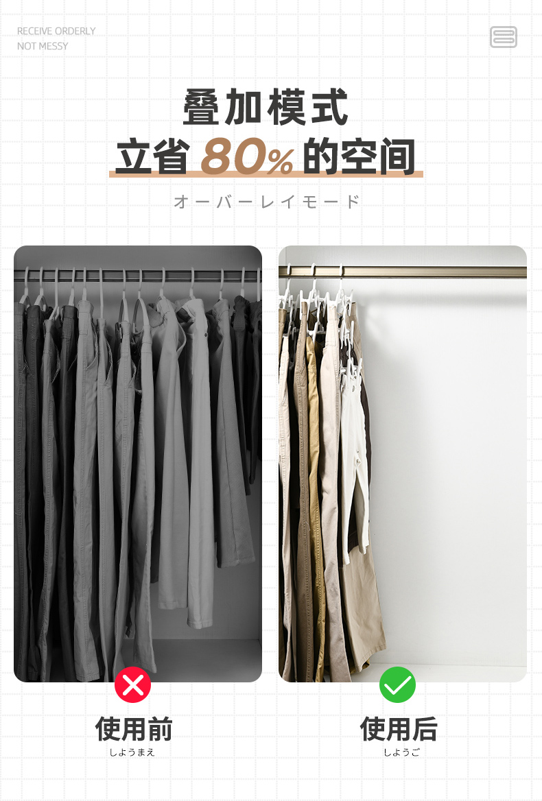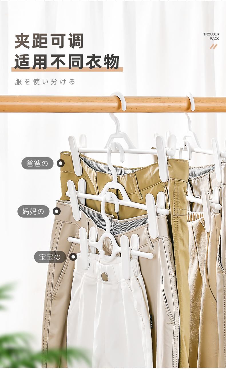 D 成人裤夹(6枚入) 家用日式白色多功能多层裤架夹子裤夹衣架收纳神器晾晒