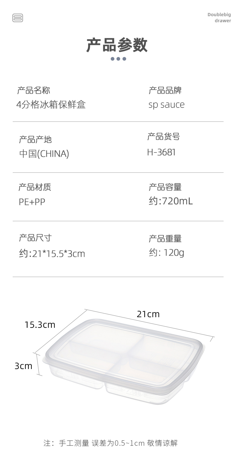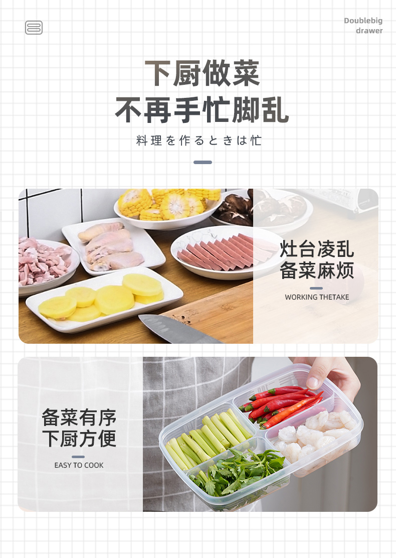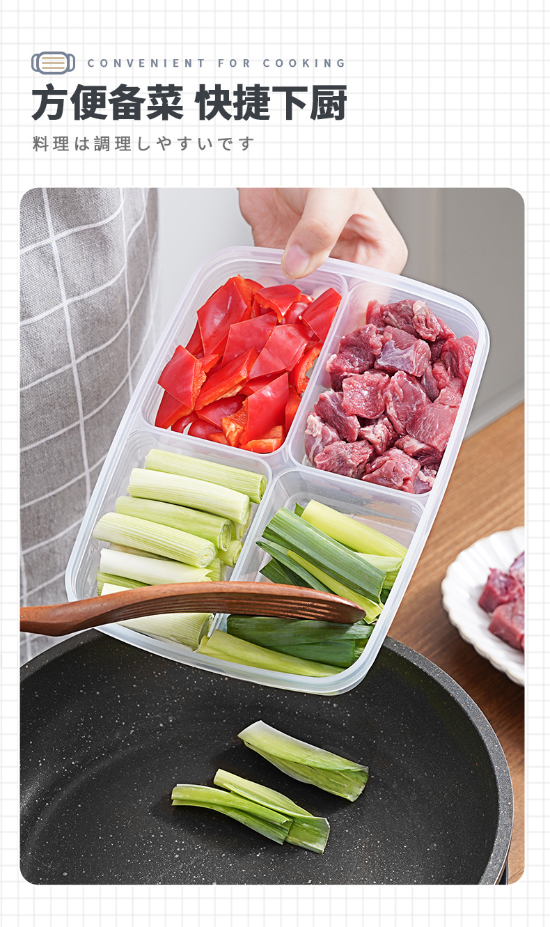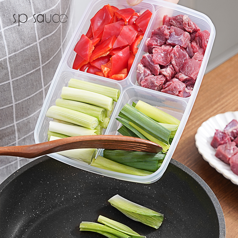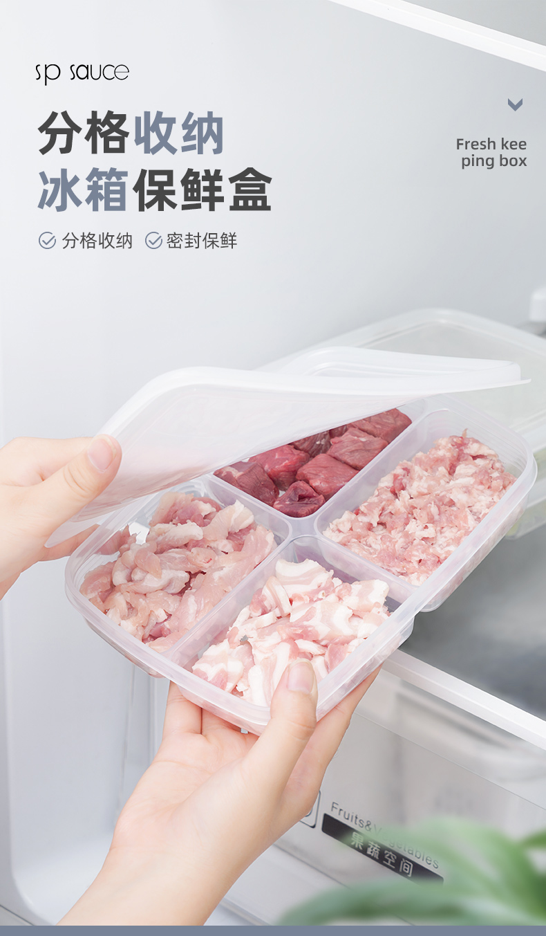 4分格冰箱保鲜盒 冻肉四分格盒子肉丝片冷冻盒冰箱葱姜蒜收纳盒备菜保鲜盒