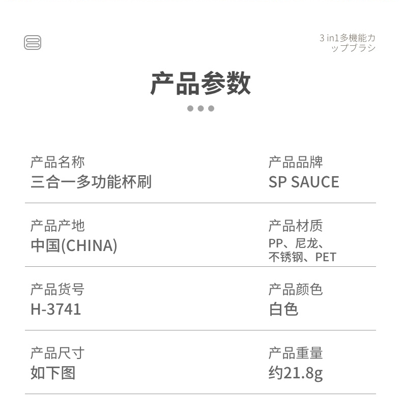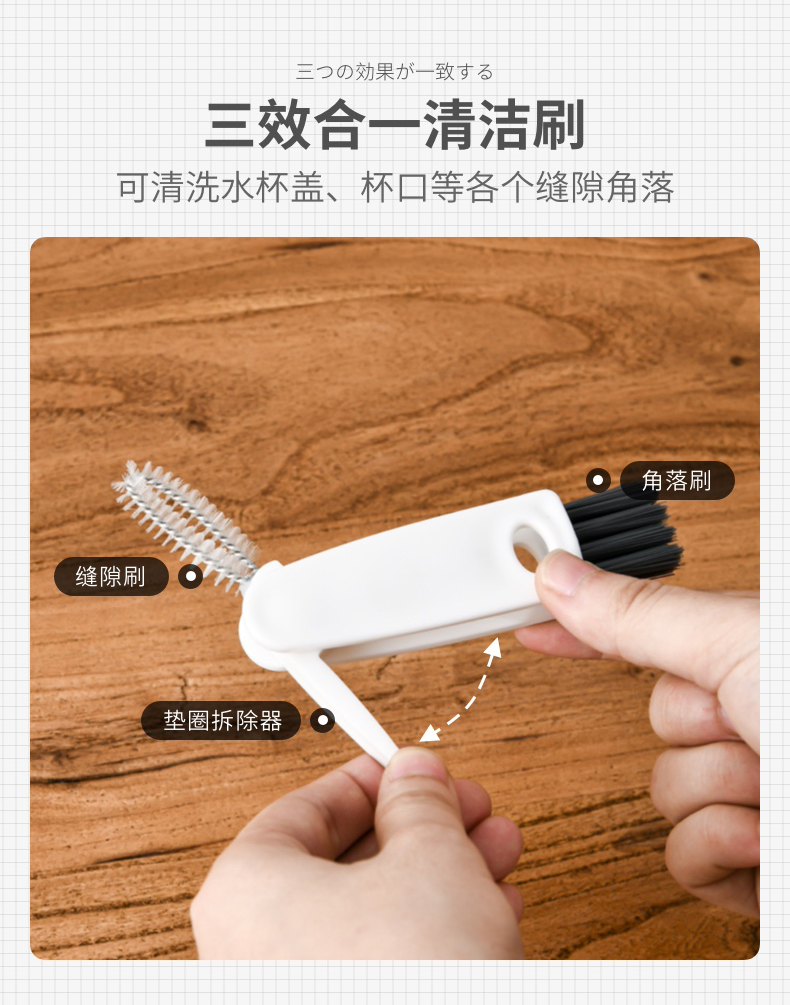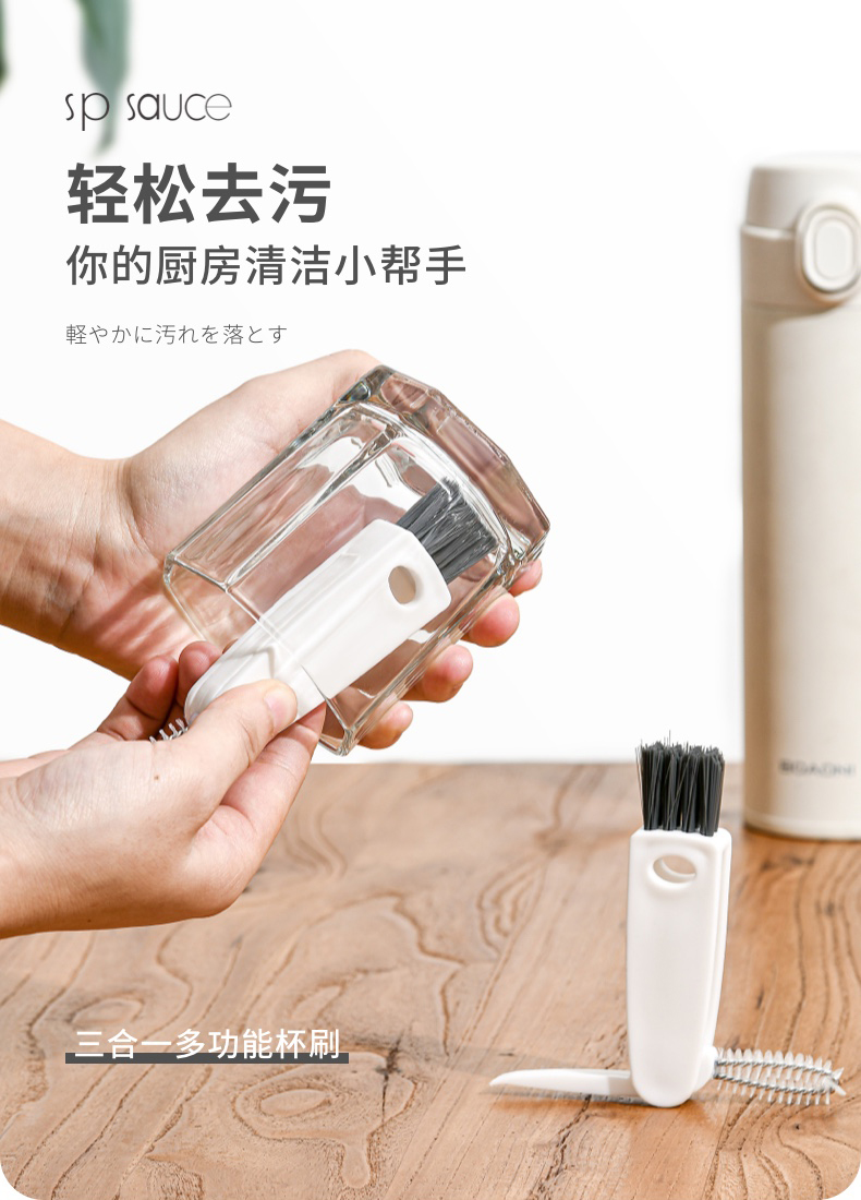D 三合一多功能杯刷 保温杯盖缝隙刷厨房清洗杯子刷凹槽清洁刷小刷子
