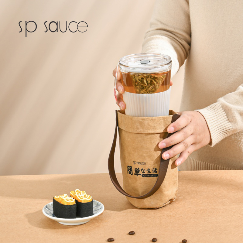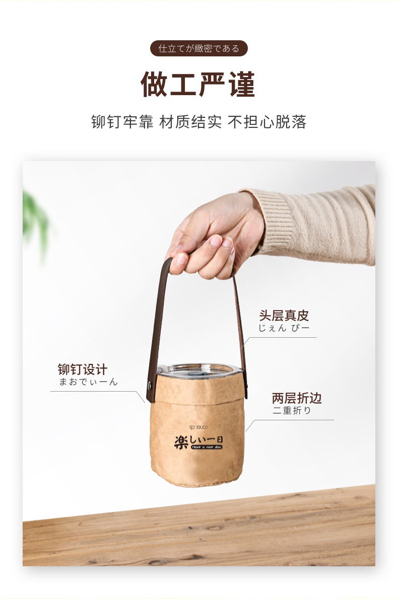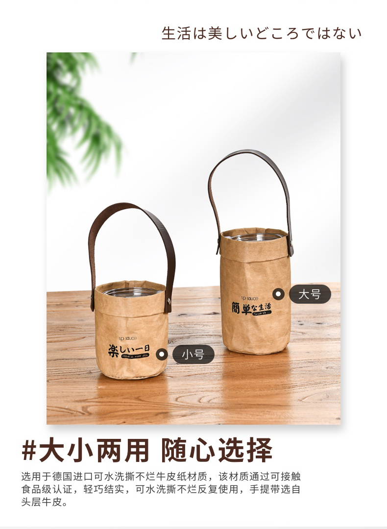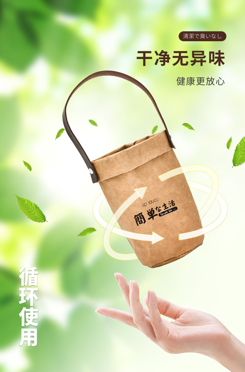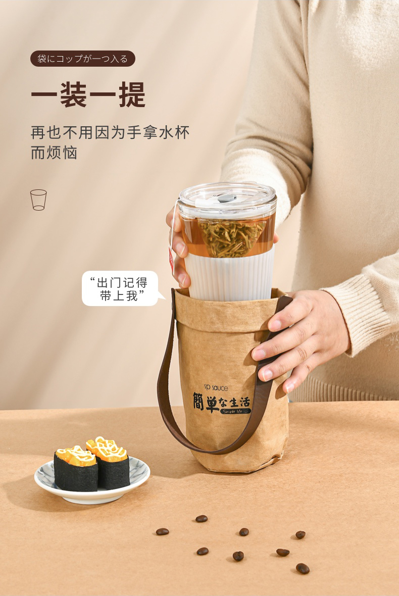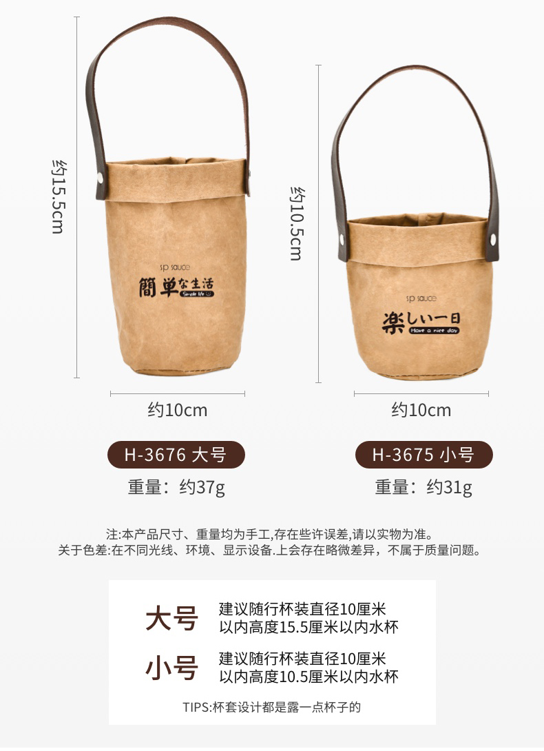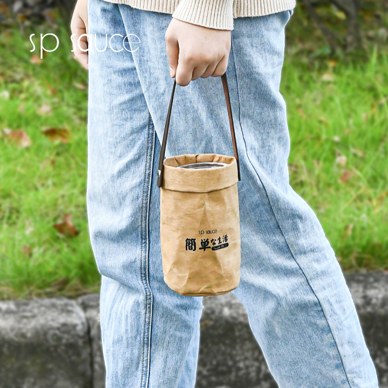 D 水杯袋 大号 手提随行杯保温杯水杯套咖啡杯套防水洗牛皮纸水杯袋
