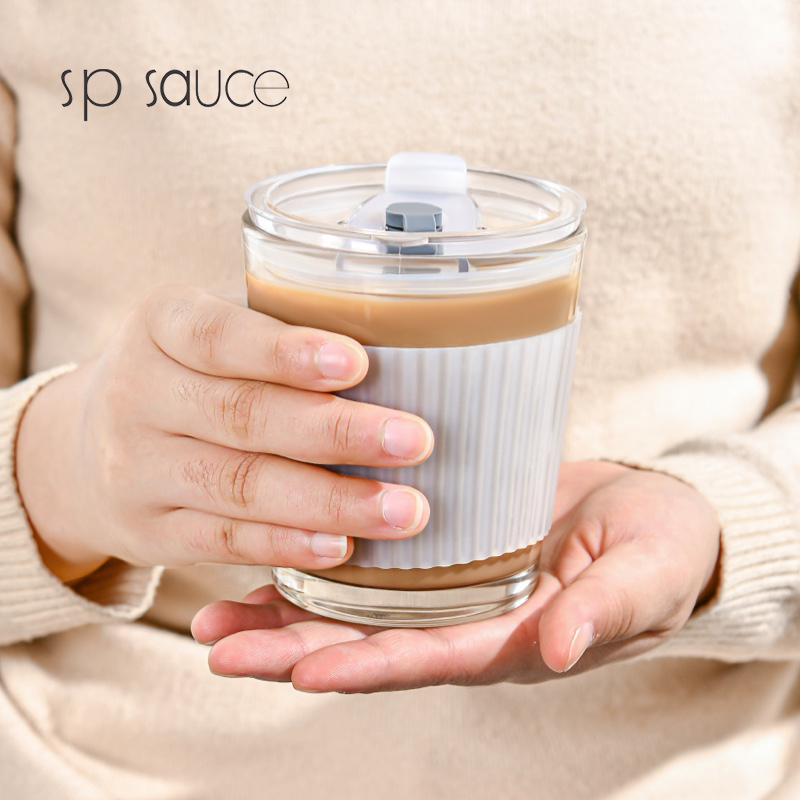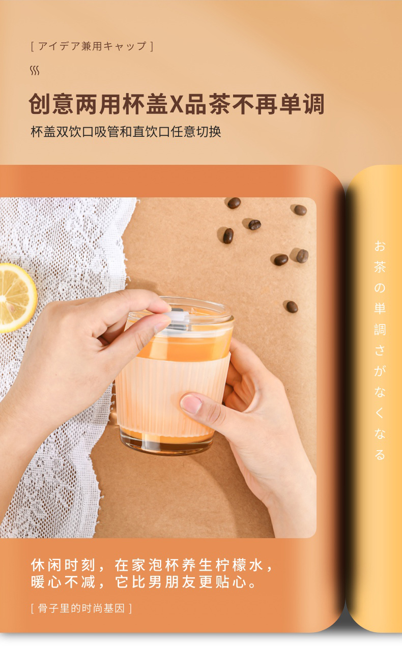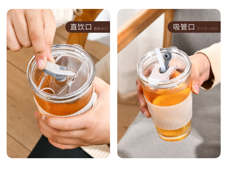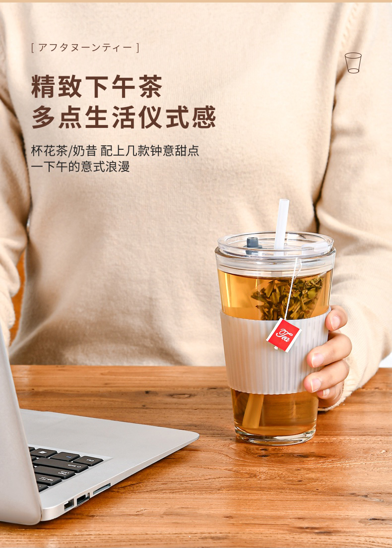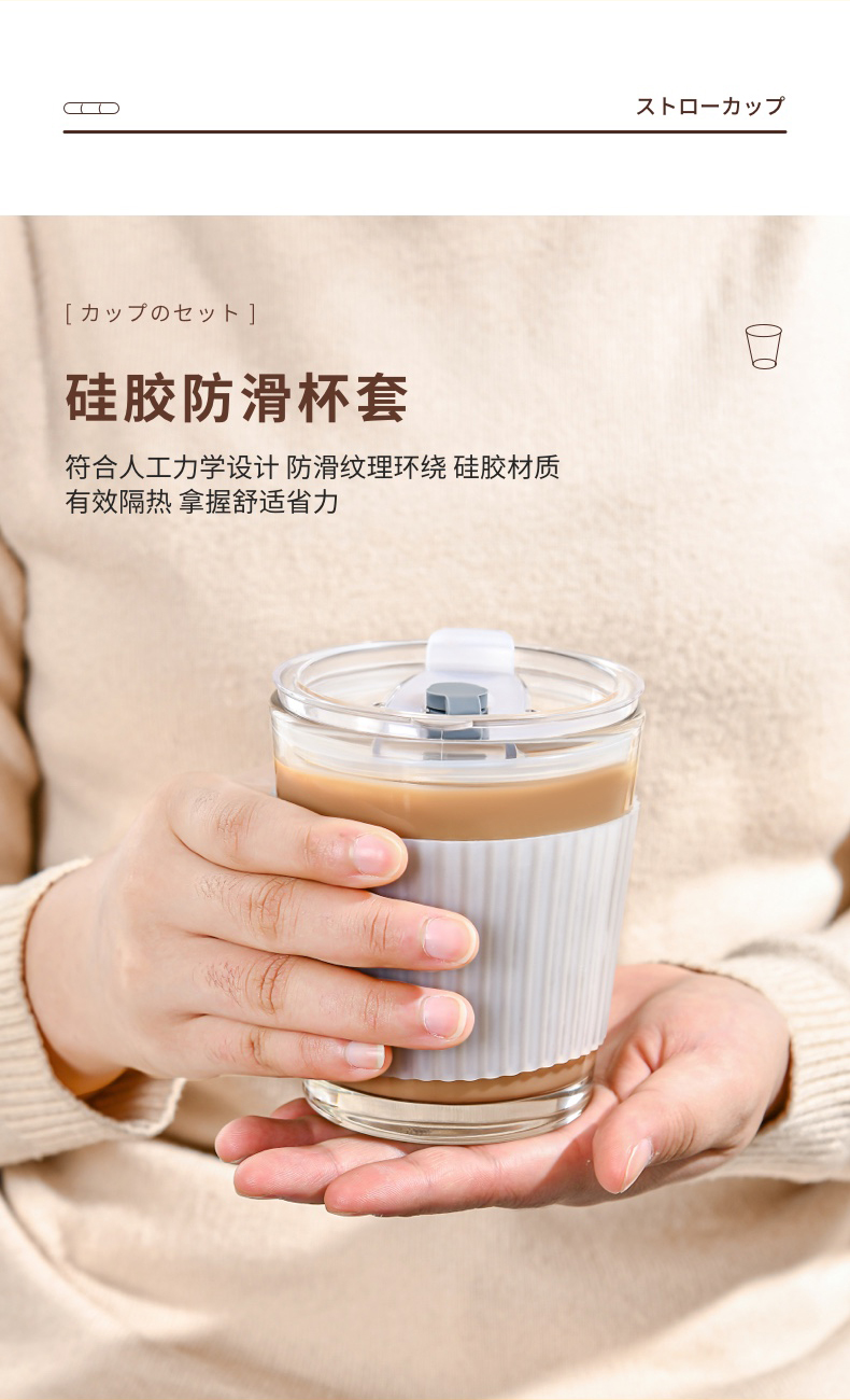 D 吸管杯450ml 咖啡杯手持玻璃杯便携式吸管杯随手茶水杯子