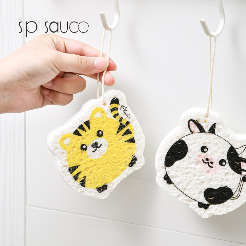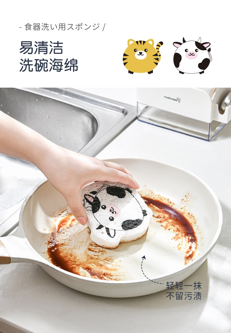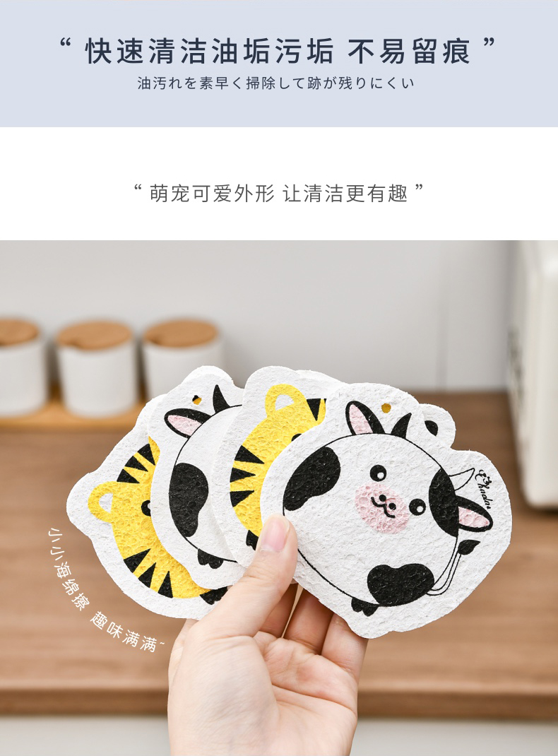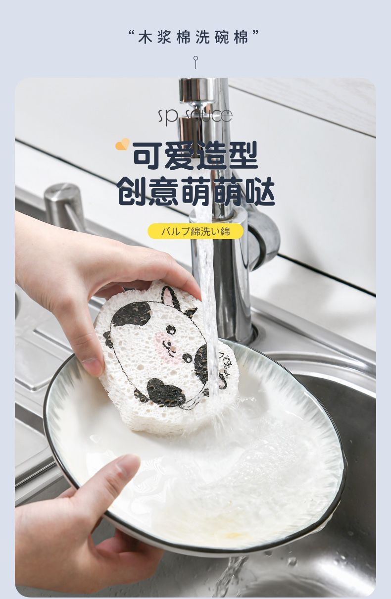 可爱动物洗碗棉 木浆棉洗碗海绵厨房刷碗神器家用海绵擦清洁加厚