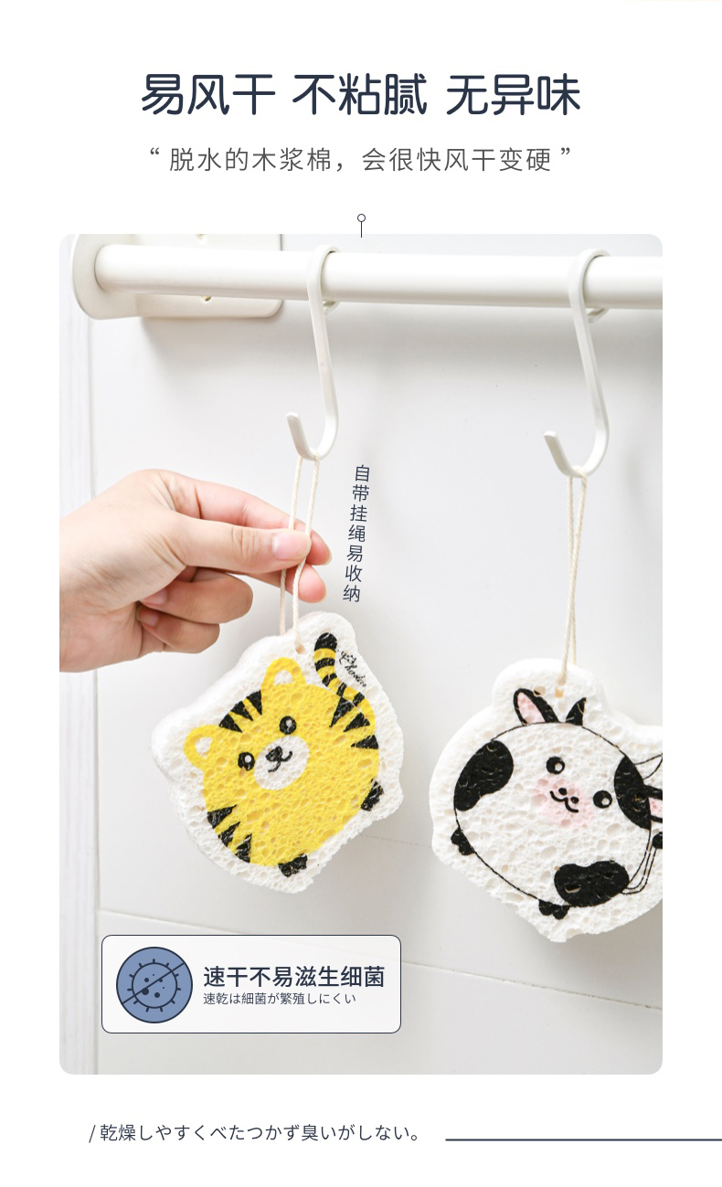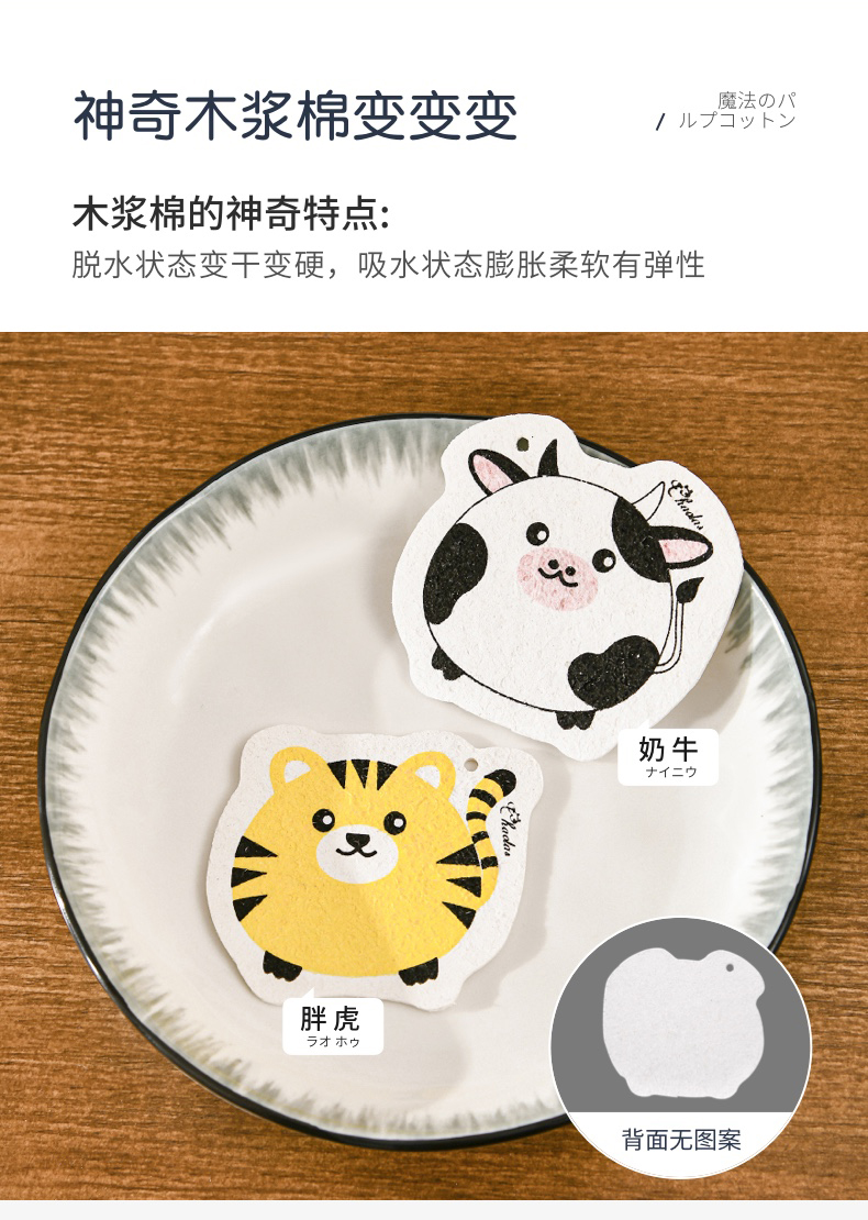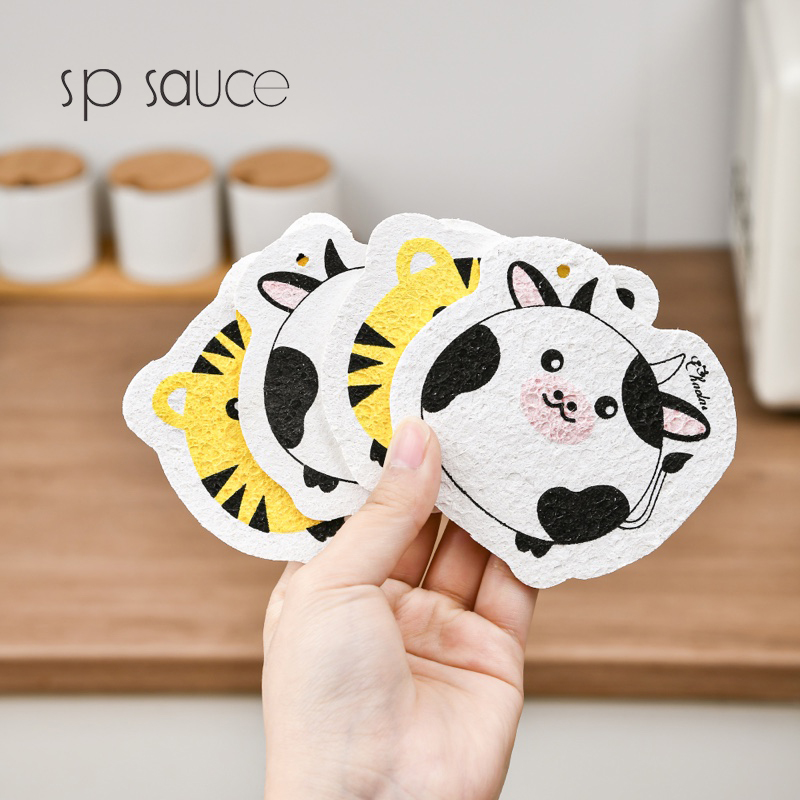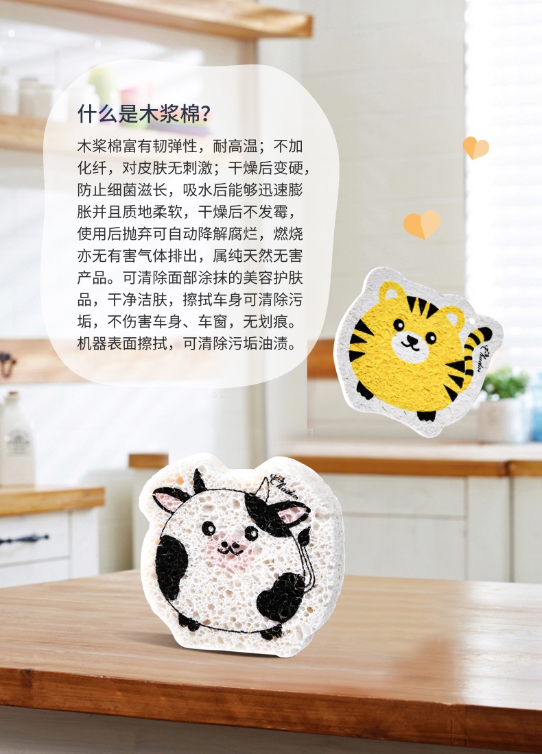 可爱动物洗碗棉 木浆棉洗碗海绵厨房刷碗神器家用海绵擦清洁加厚