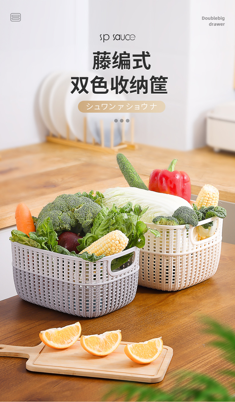 D 双色收纳筐大号 收纳盒桌面收纳盒收纳筐厨房收纳玩具收纳办公桌收纳大号
