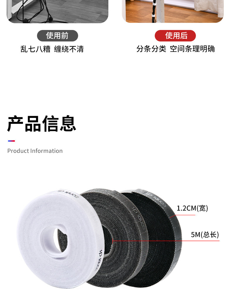 D可撕魔术扎带(1.2cm*5m入) 魔术贴电脑理线扎带可撕魔术贴多功能线缆收纳理线带