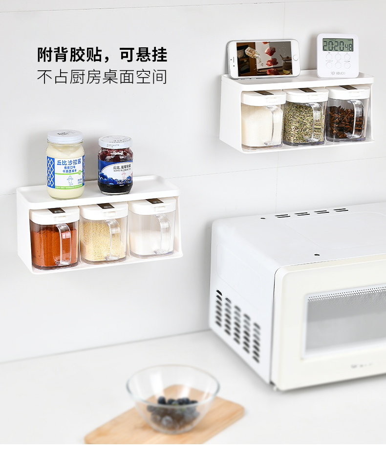 D 两用调料罐套装(2大口+1小口) 调料盒套装家用防潮防尘调味罐调味盒盐罐佐料瓶收纳盒
