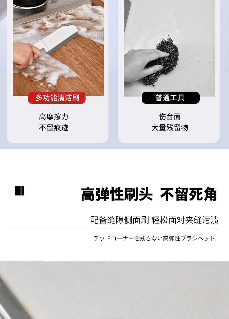 D 多功能清洁刷 厨房浴室台面地面窗户硅胶多功能清洁刷缝隙刷刮板刷三合一清洁刷