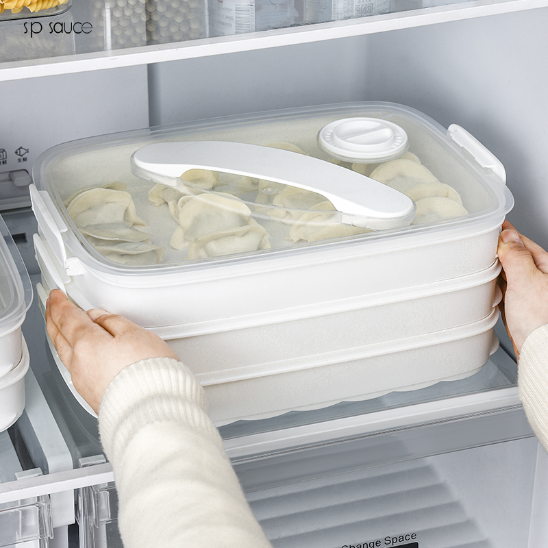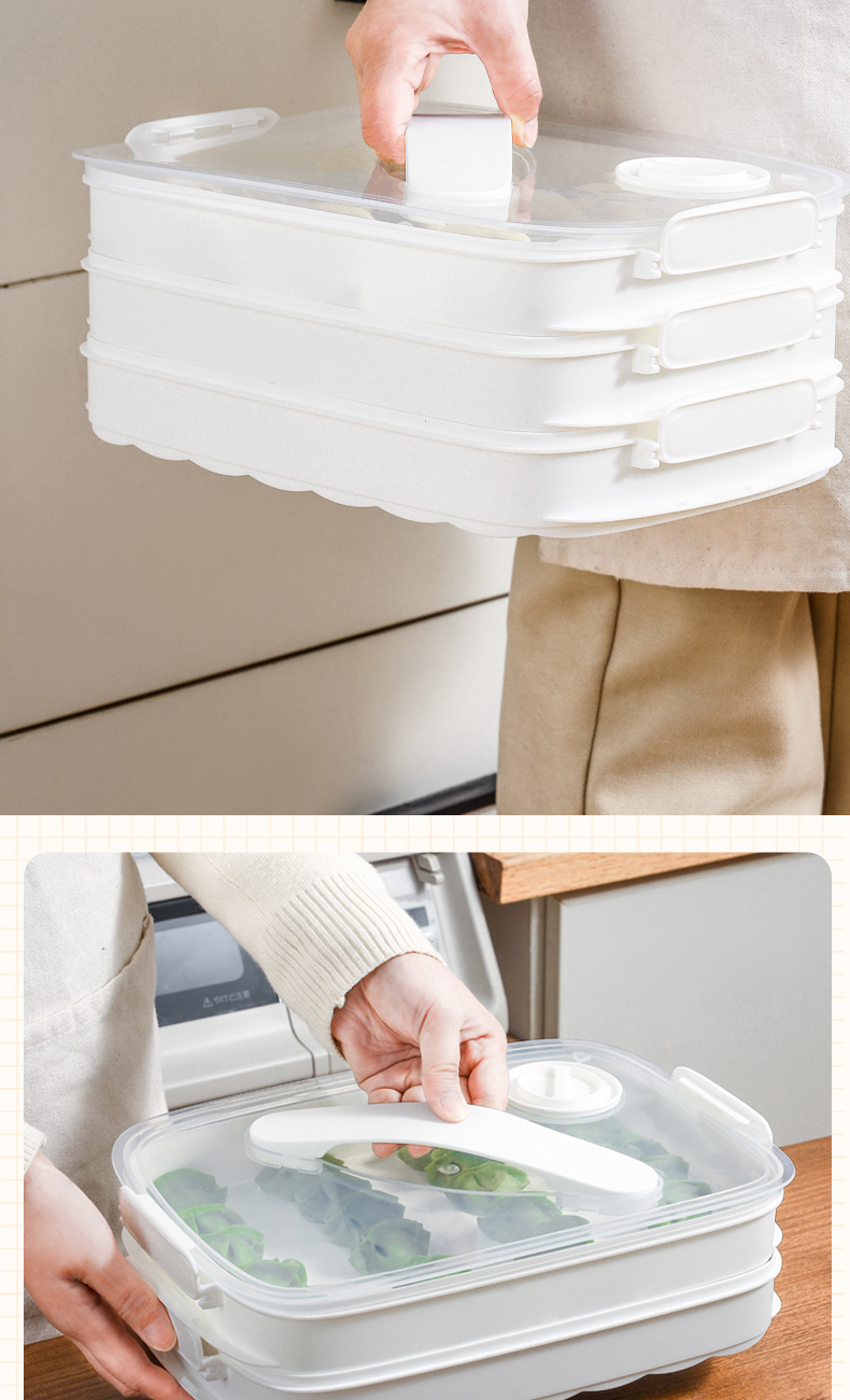 斜提单层饺子盒 手提饺子盒家用馄饨水饺收纳盒冻饺子托盘冰箱用放饺子速冻盒