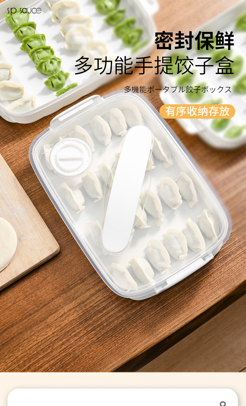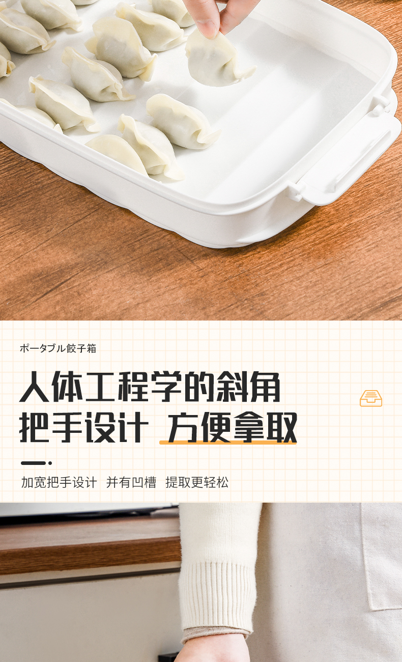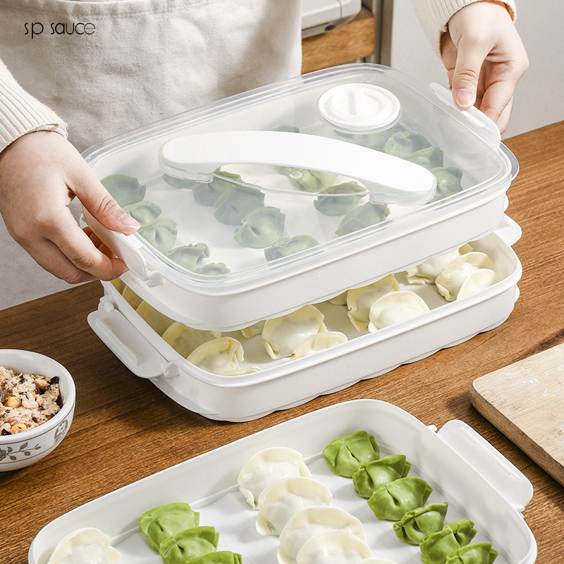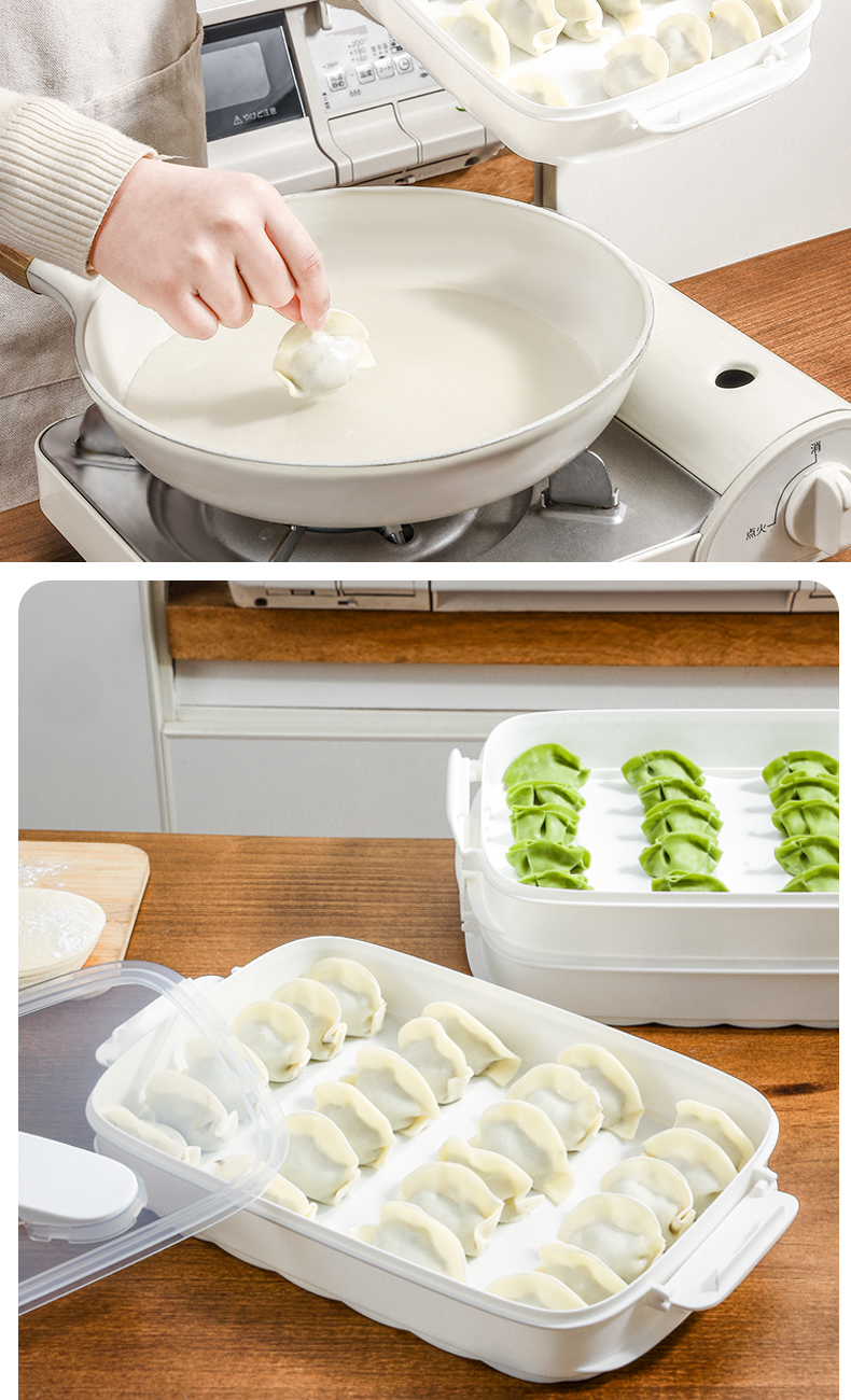 D 斜提三层饺子盒 手提饺子盒家用馄饨水饺收纳盒冻饺子托盘多层冰箱用放饺子速冻盒