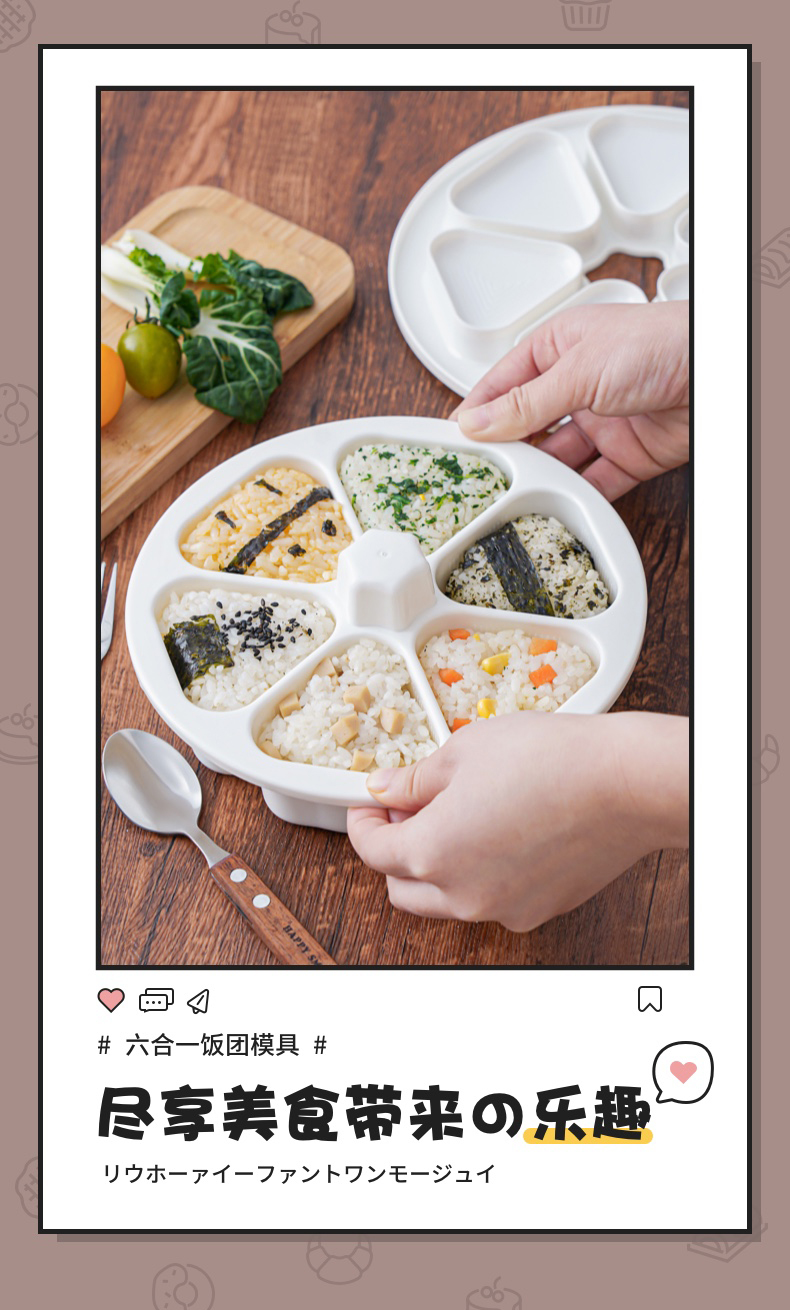 六合一饭团模具 饭团模具三角饭团便当盒日式寿司模具六合一做紫菜包饭制作工具模具