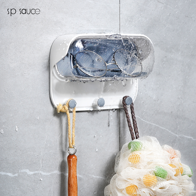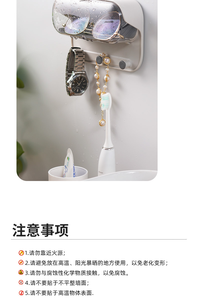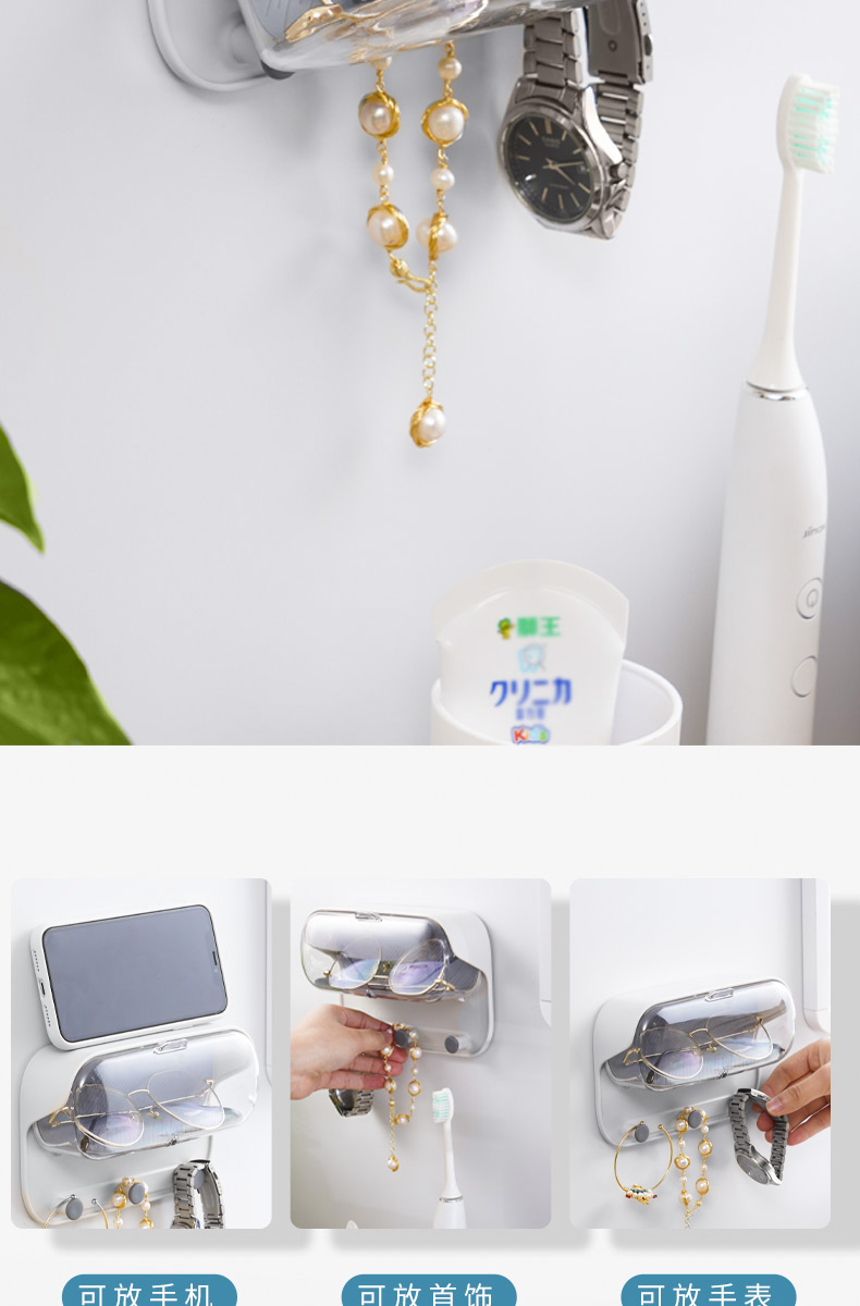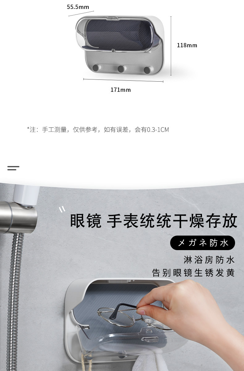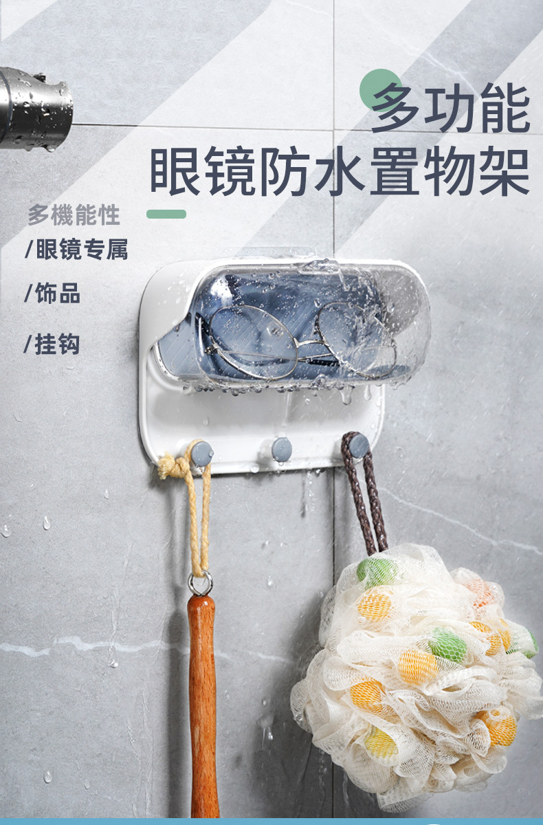 D 多功能眼镜防水置物架 浴室收纳盒壁挂式免打孔防水防尘带挂钩置物架家用卫生间眼镜盒浴巾挂钩