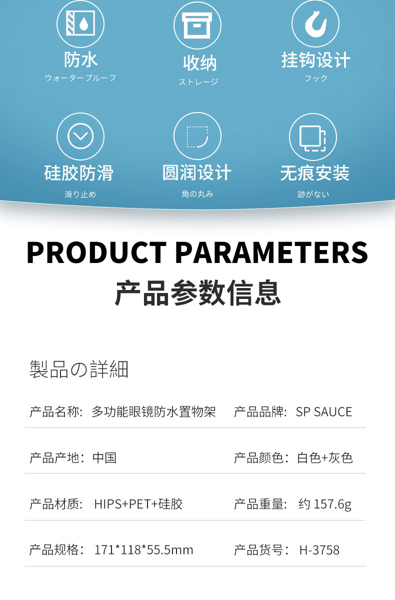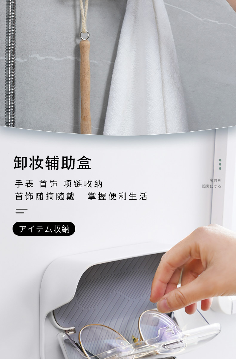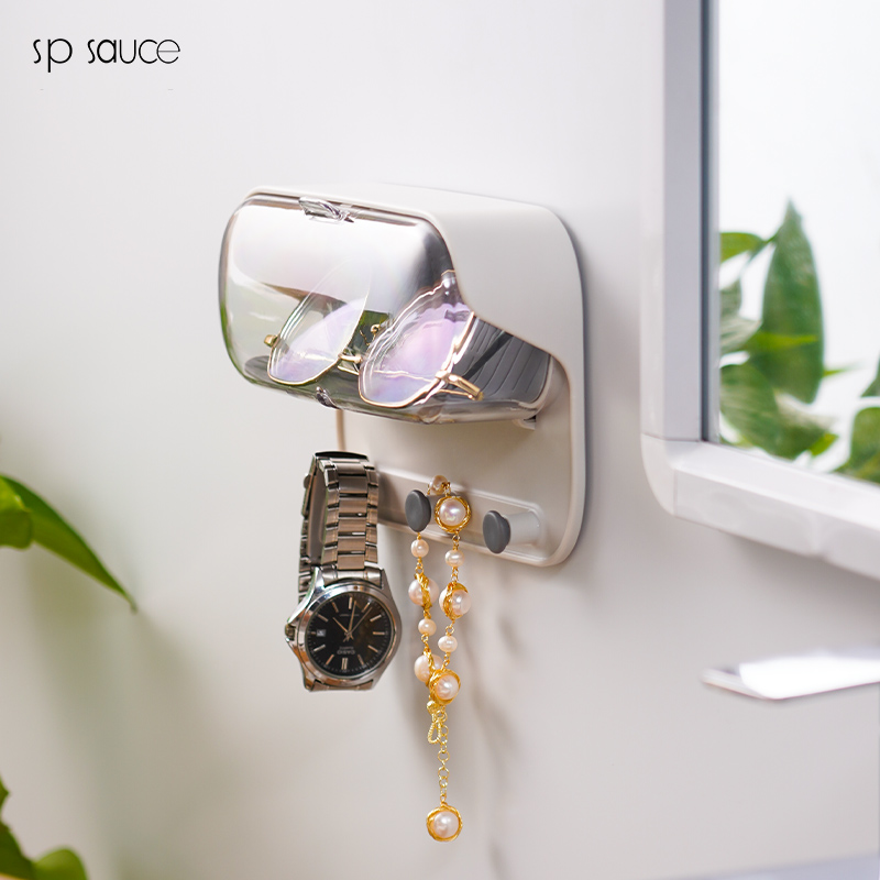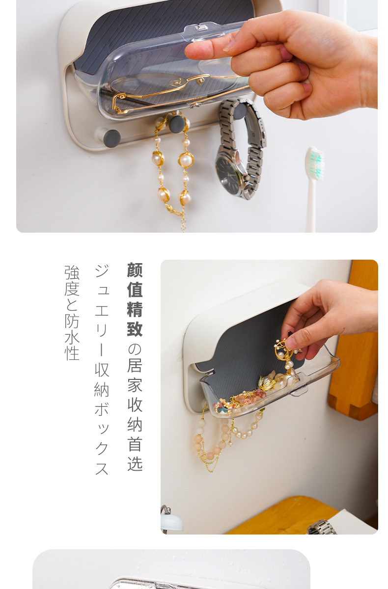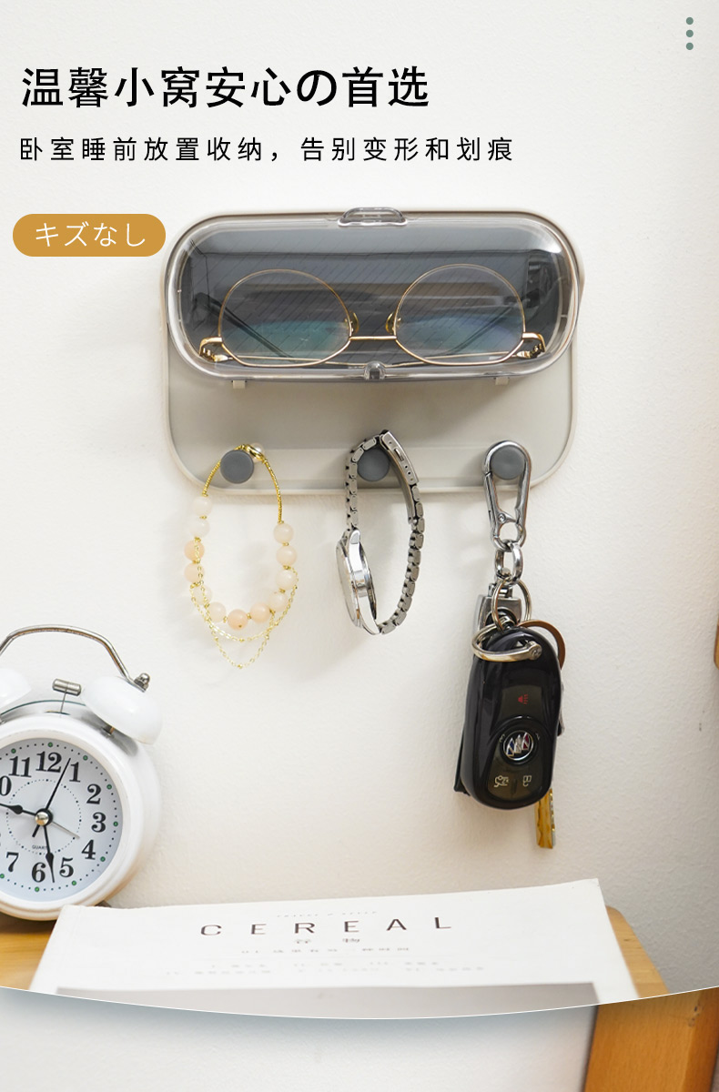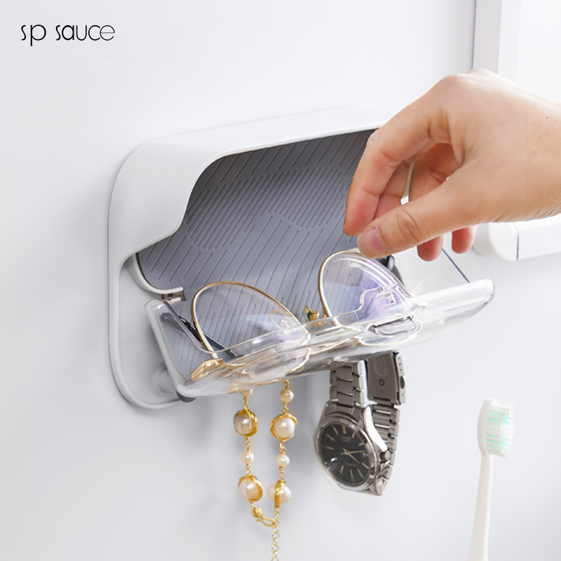 D 多功能眼镜防水置物架 浴室收纳盒壁挂式免打孔防水防尘带挂钩置物架家用卫生间眼镜盒浴巾挂钩