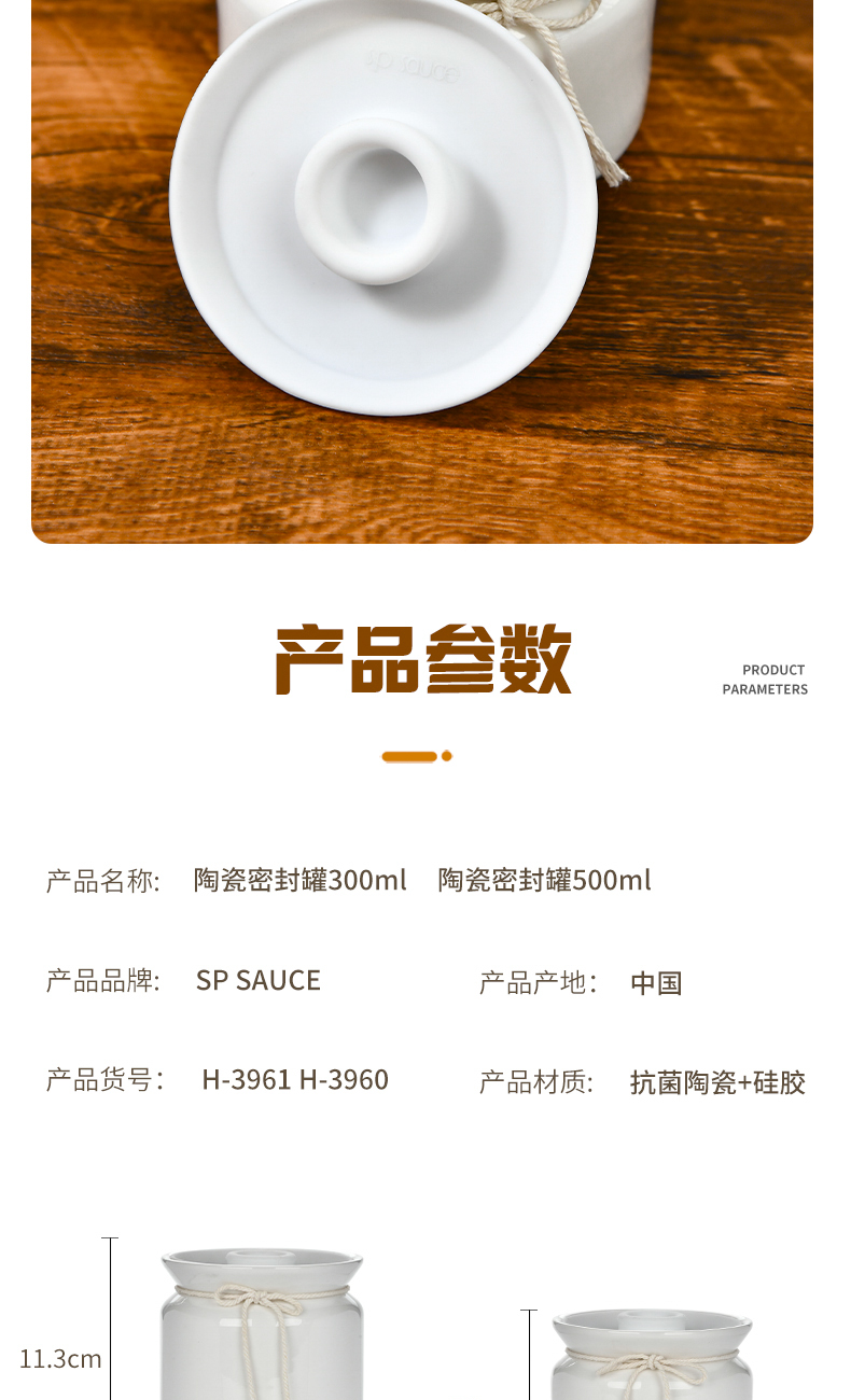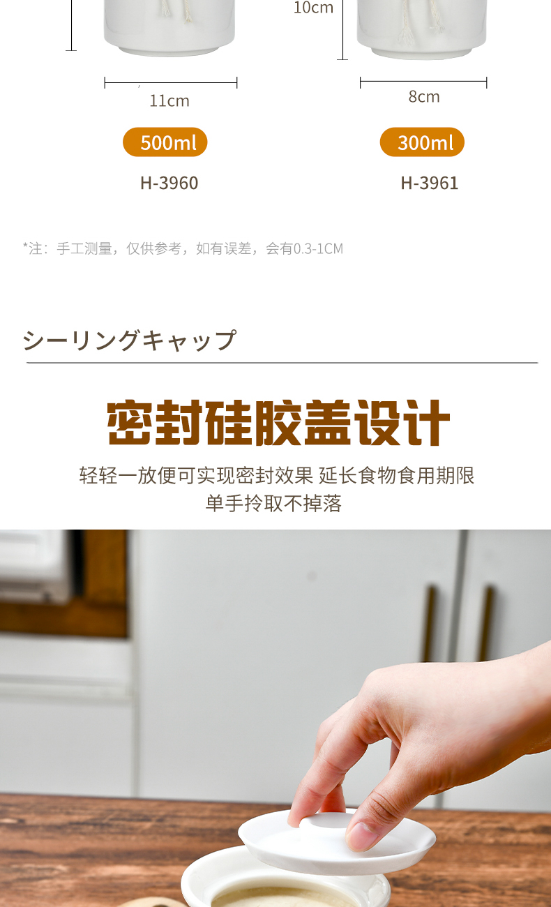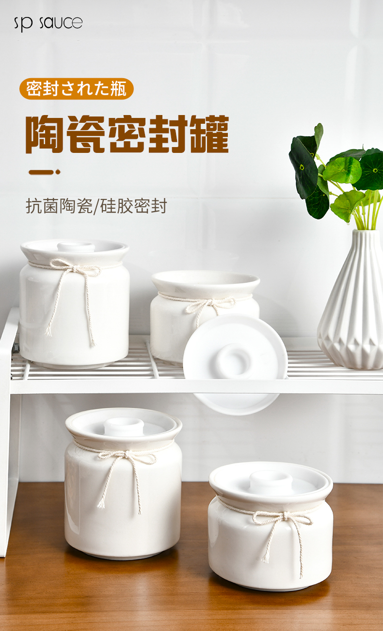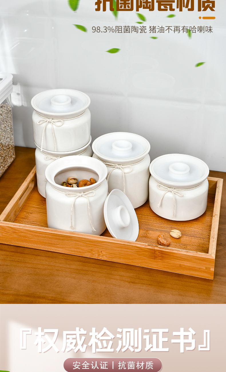 猪油陶瓷密封罐 300ml 密封罐泡菜坛子家用陶瓷罐咸菜酸菜密封盒储物罐日式抗菌陶瓷