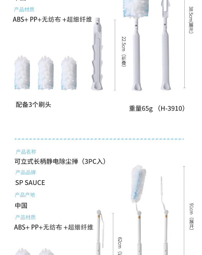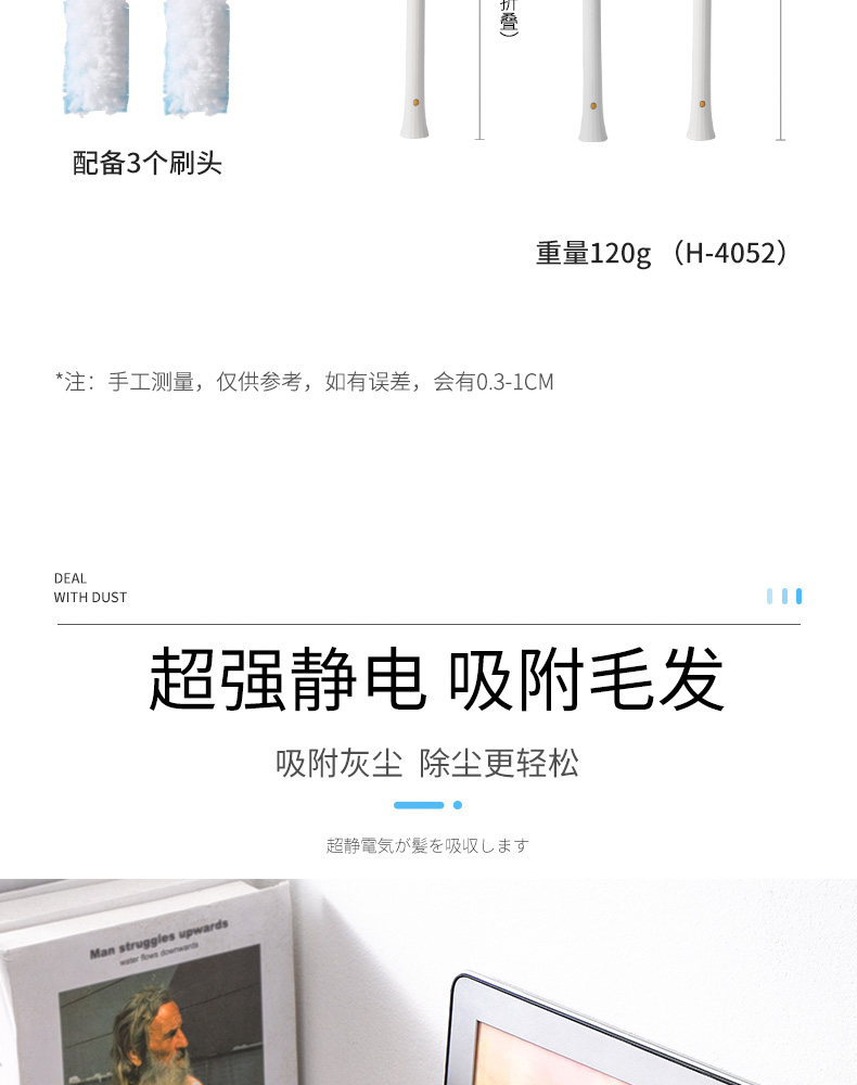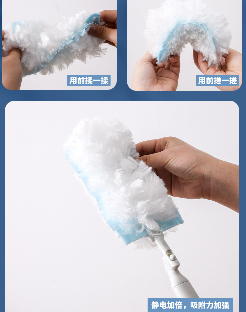 D 除尘掸替换装 3PC入 可立式除尘掸静电除尘掸子鸡毛禅子家用扫灰尘清洁替换装