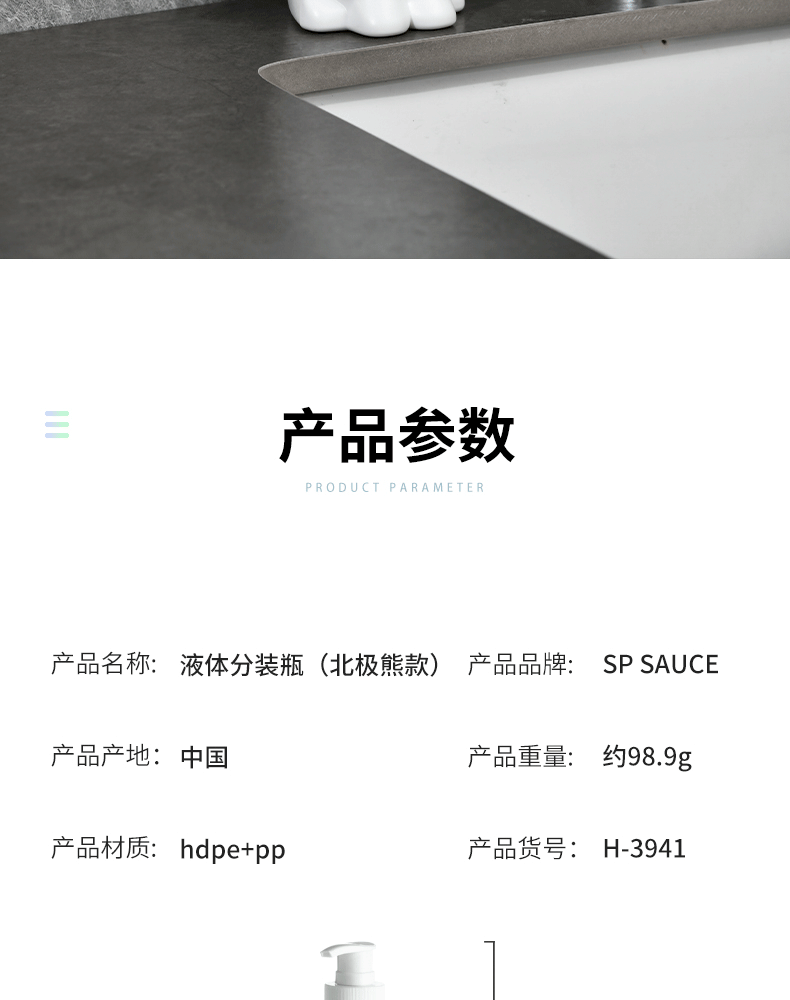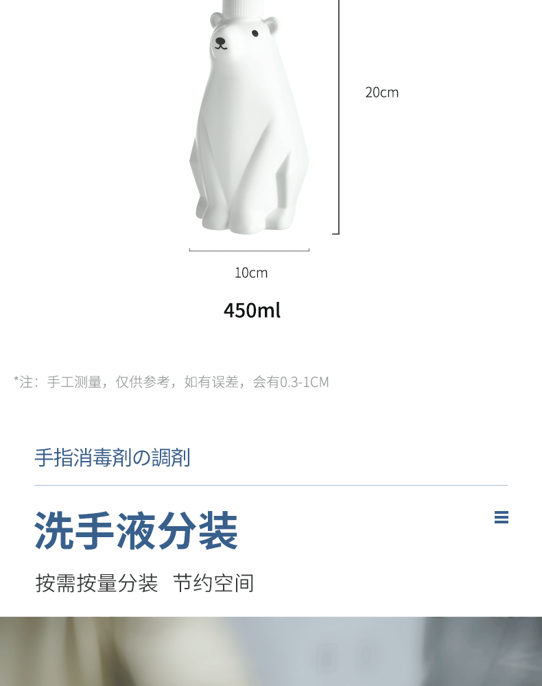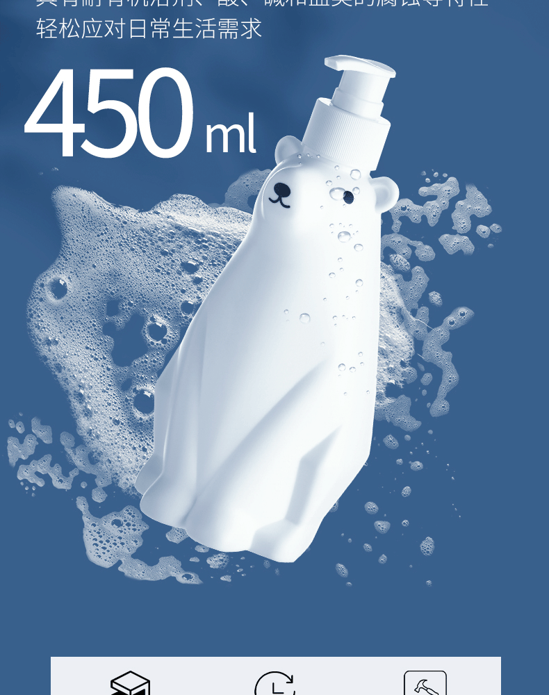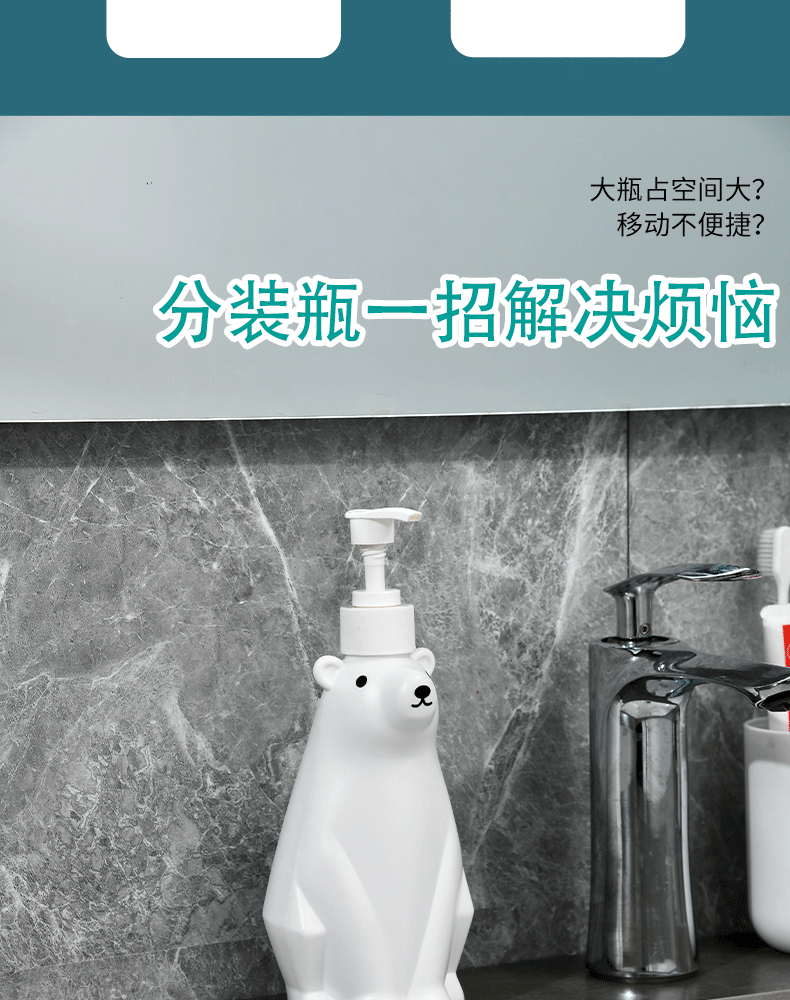 液体分装瓶(北极熊款)450ml 洗手液分装瓶北极熊大容量按压式沐浴瓶分装洗发水护发素按压空瓶补充型