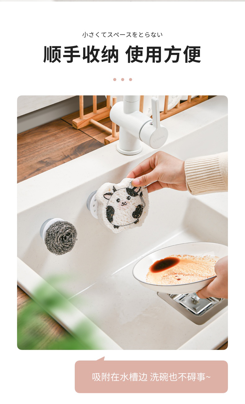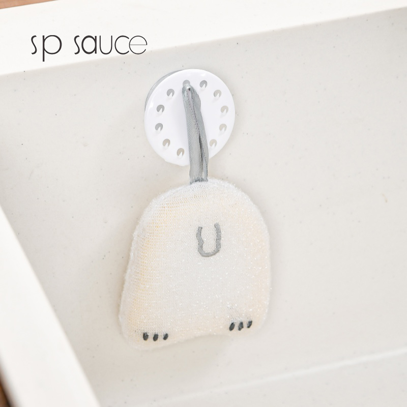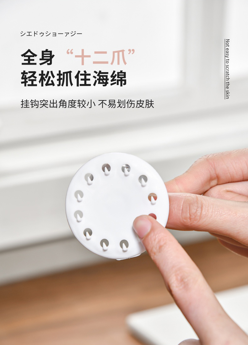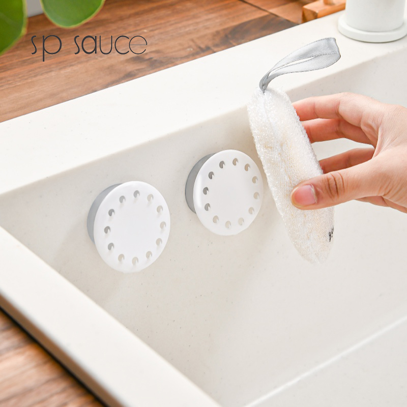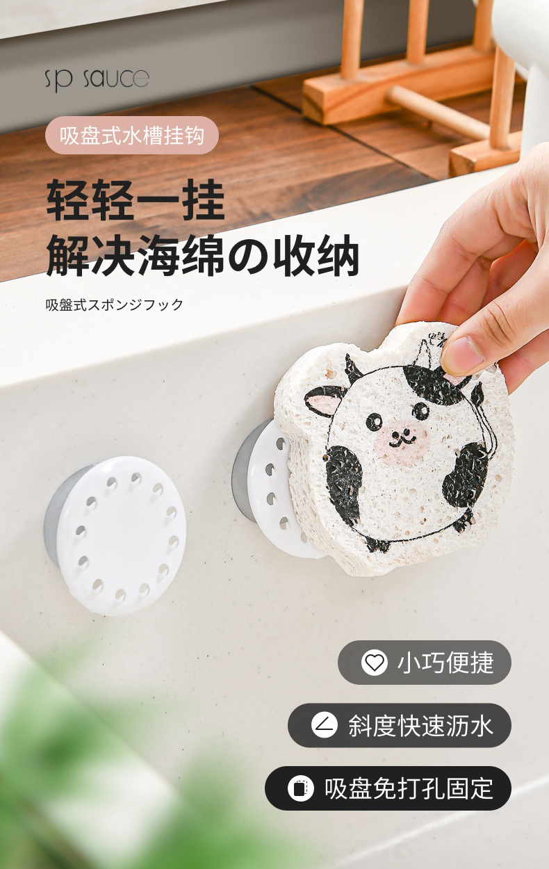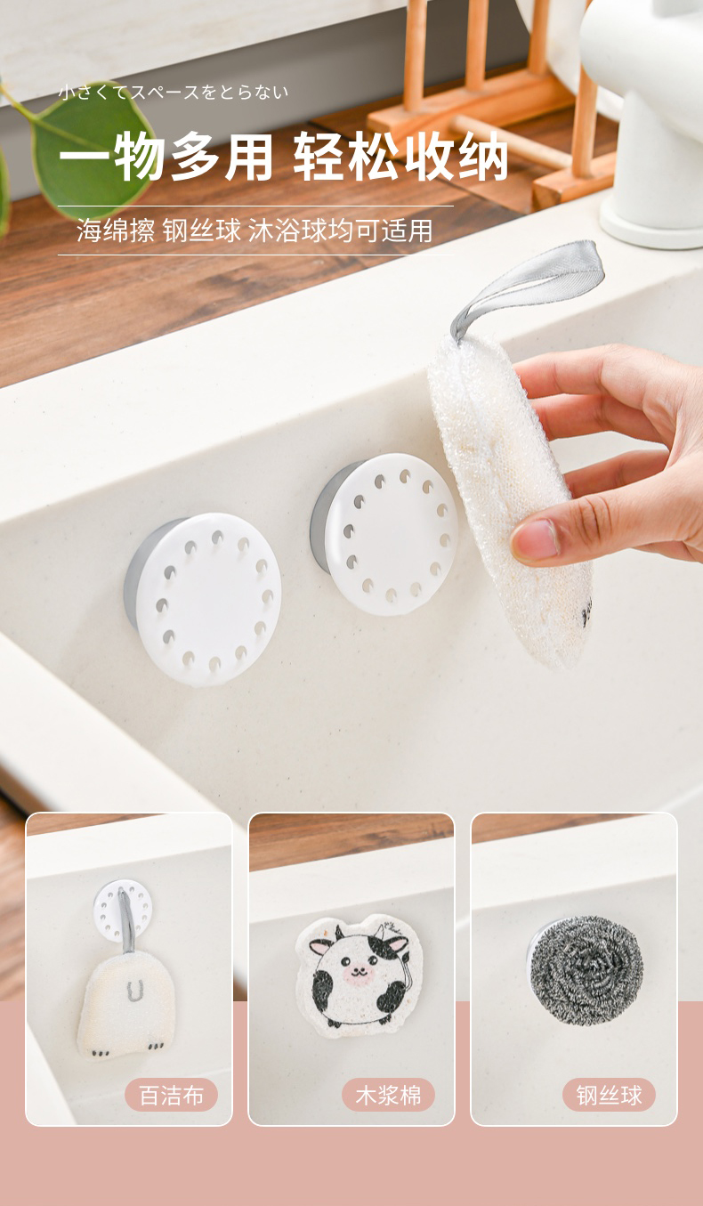 吸盘式水槽海绵挂钩(2PC入) 海绵擦强力吸盘挂钩免打孔百洁布收纳挂钩钢丝球收纳挂钩神器