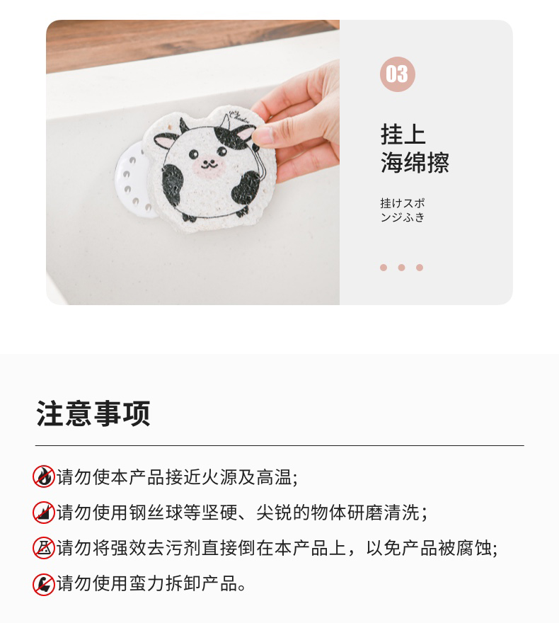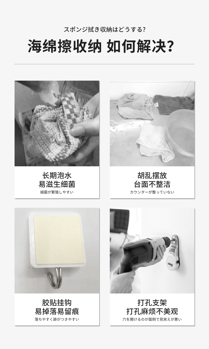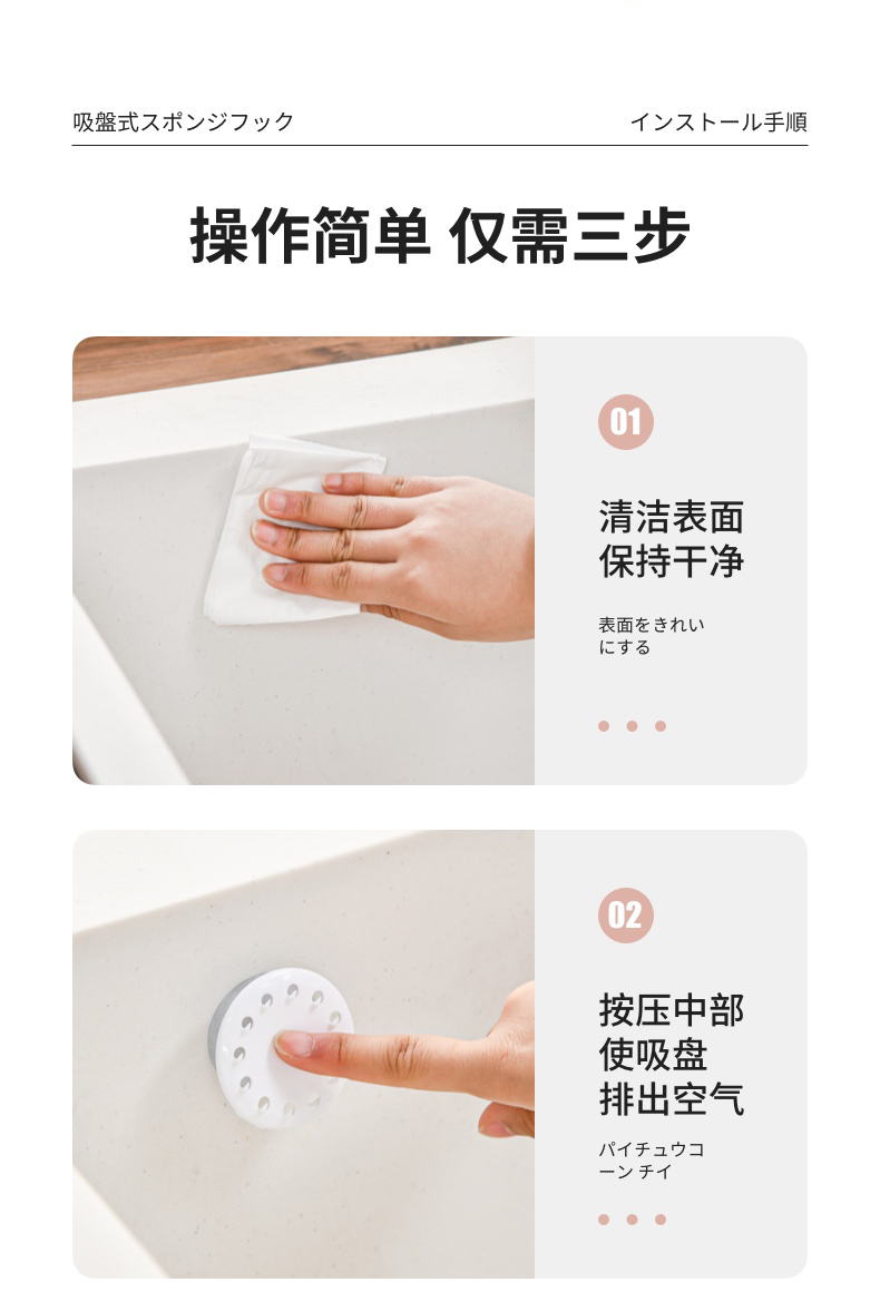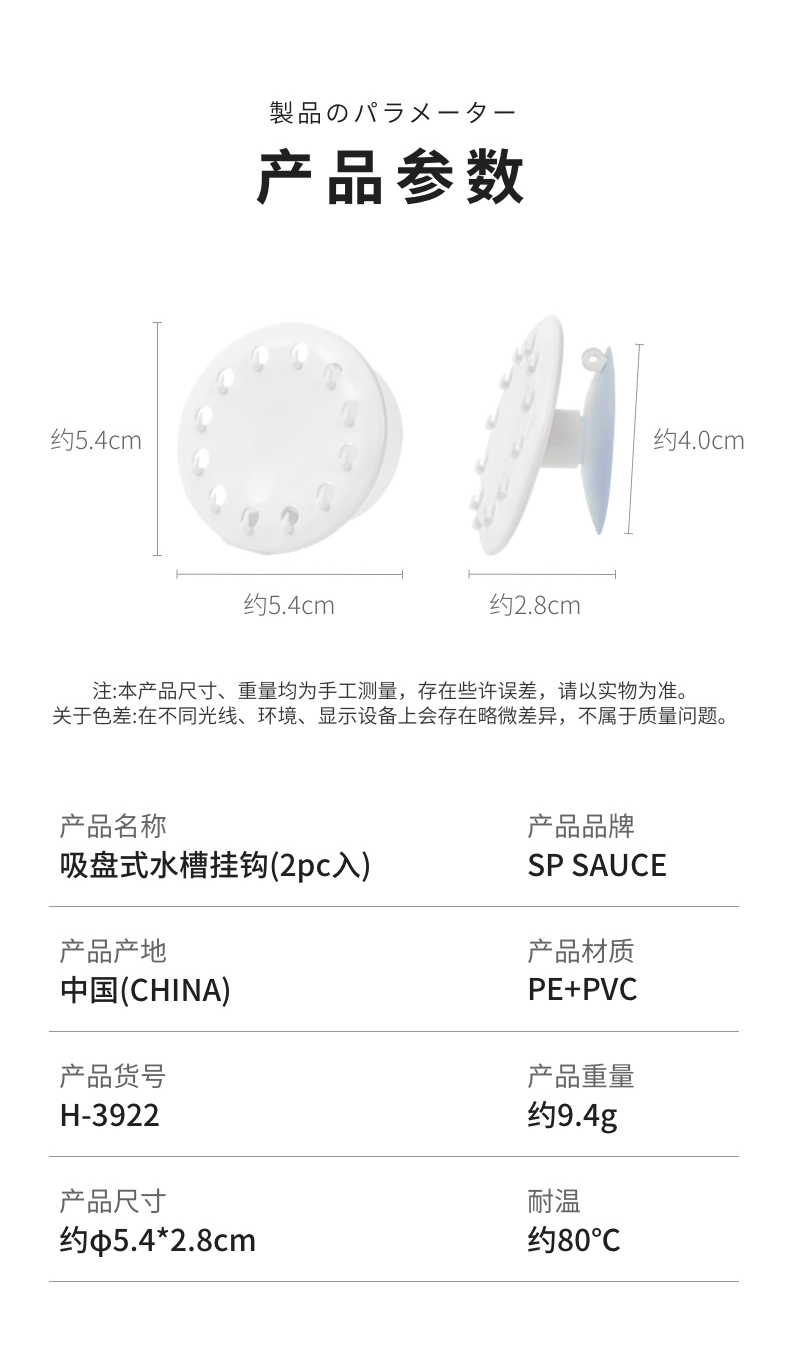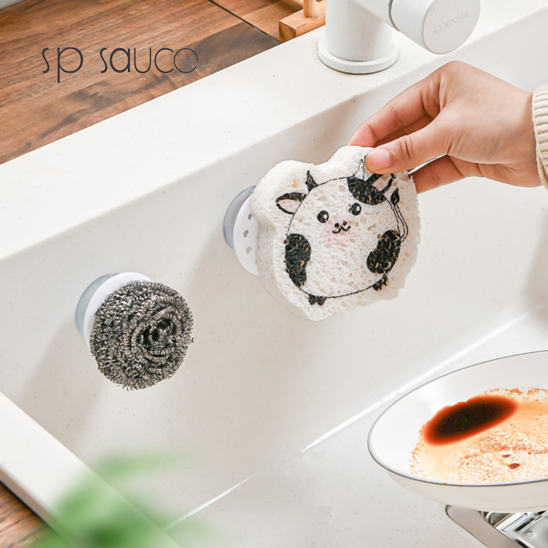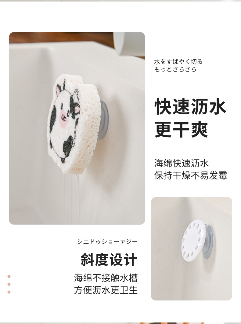 吸盘式水槽海绵挂钩(2PC入) 海绵擦强力吸盘挂钩免打孔百洁布收纳挂钩钢丝球收纳挂钩神器