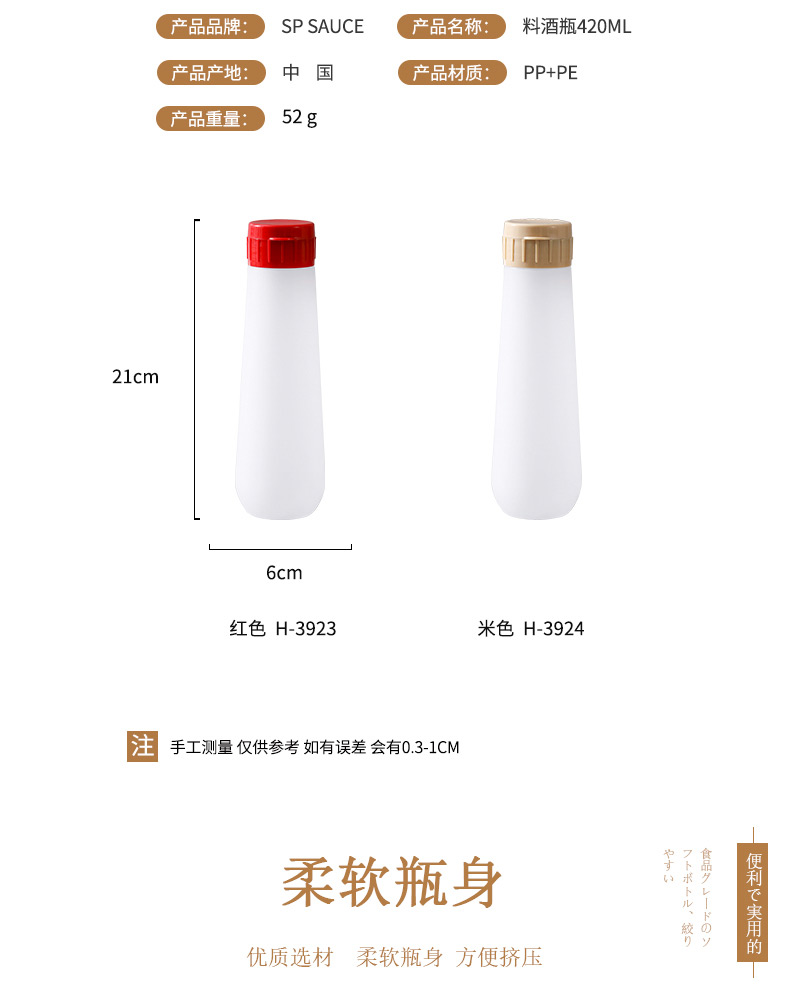 D 料酒瓶 420ML 防潮油瓶挤压式户外便携式日式野营醋瓶子料酒瓶家用