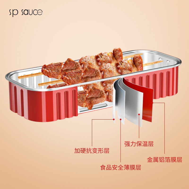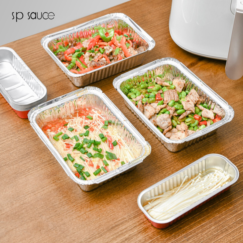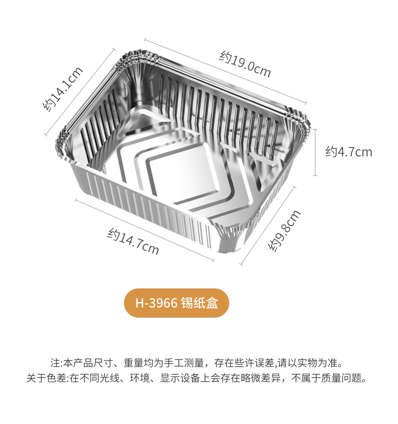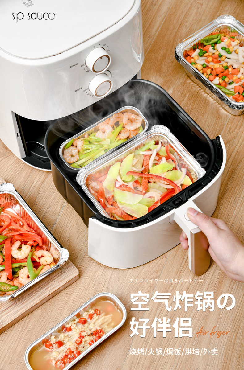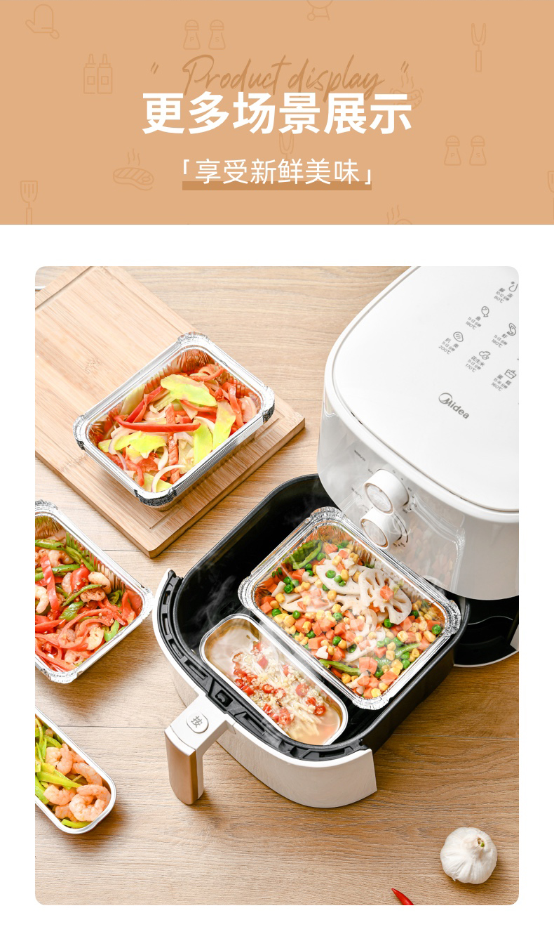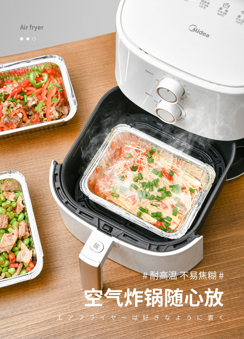 D 空气炸锅铝箔盒(10PC入) 空气炸锅铝箔盒加厚外卖打包盒一次性长方形烧烤榴莲盒铝箔蛋糕盒