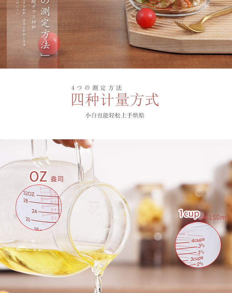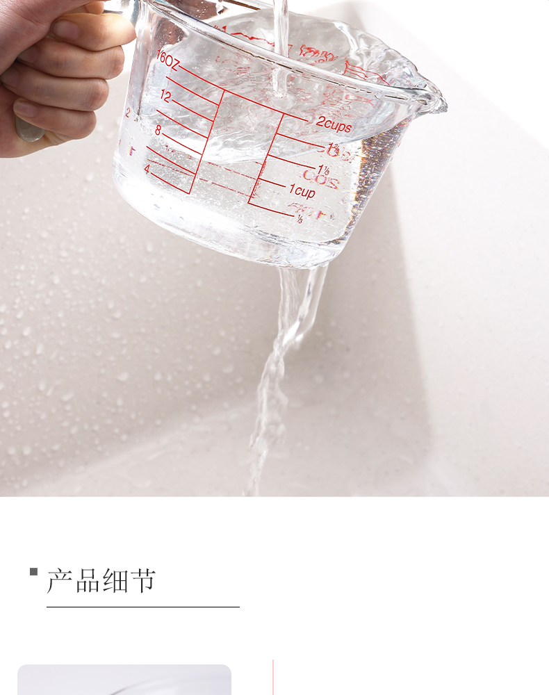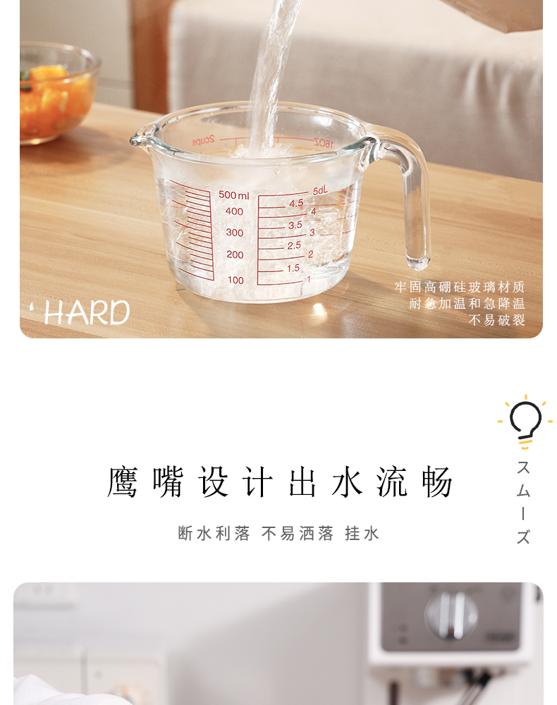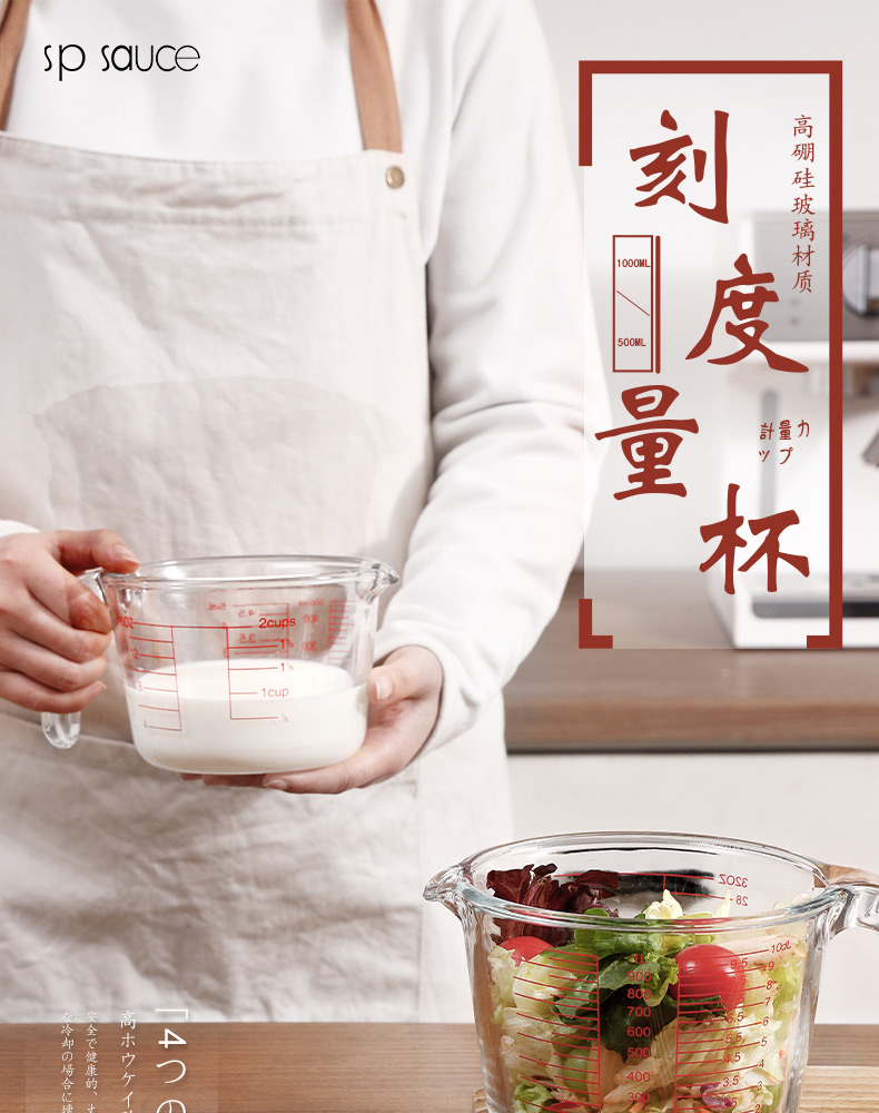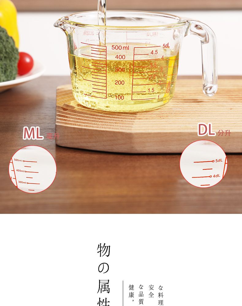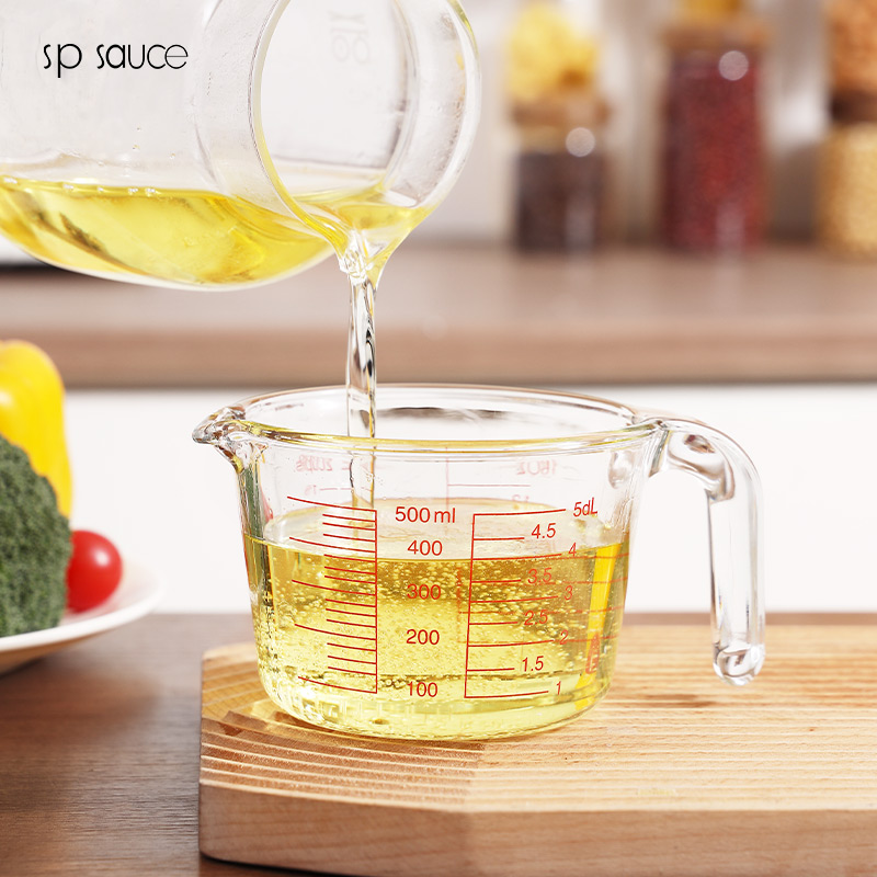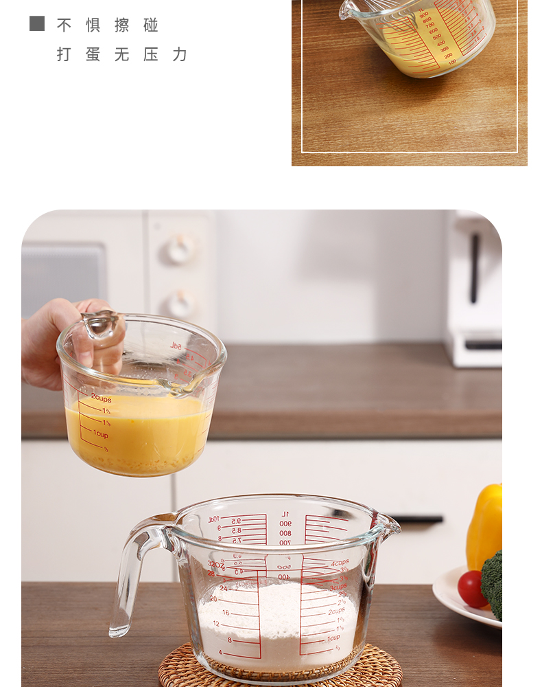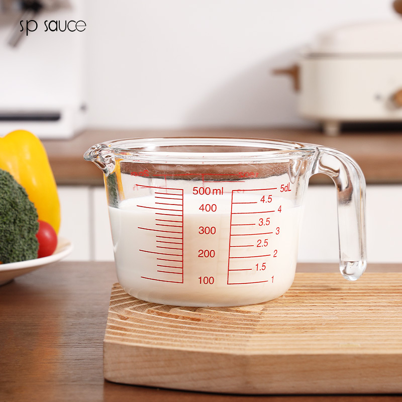D 高硼硅玻璃刻度量杯 500ML 玻璃量杯带刻度耐高温厨房烘焙工具家用毫升量面食品级计量杯