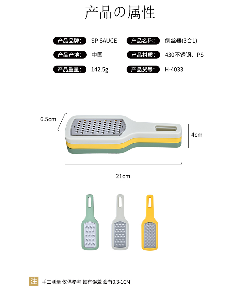 D 刨丝器(3合1) 土豆丝刨丝擦丝削切丝不锈钢器多功能粗细条刨子萝卜黄瓜三合一刨丝器