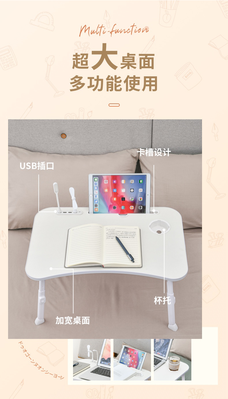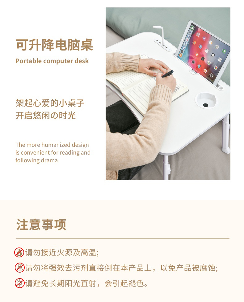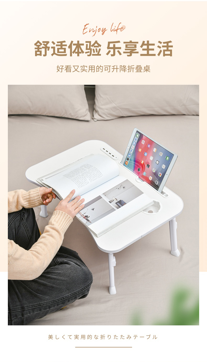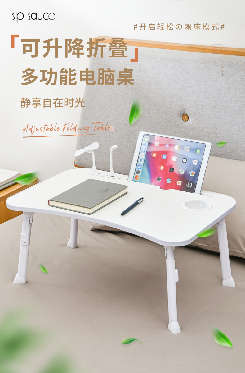 D 多功能可升降折叠电脑桌 可升降床上小桌学习书桌飘窗折叠简易小桌板笔记本支架电脑懒人桌