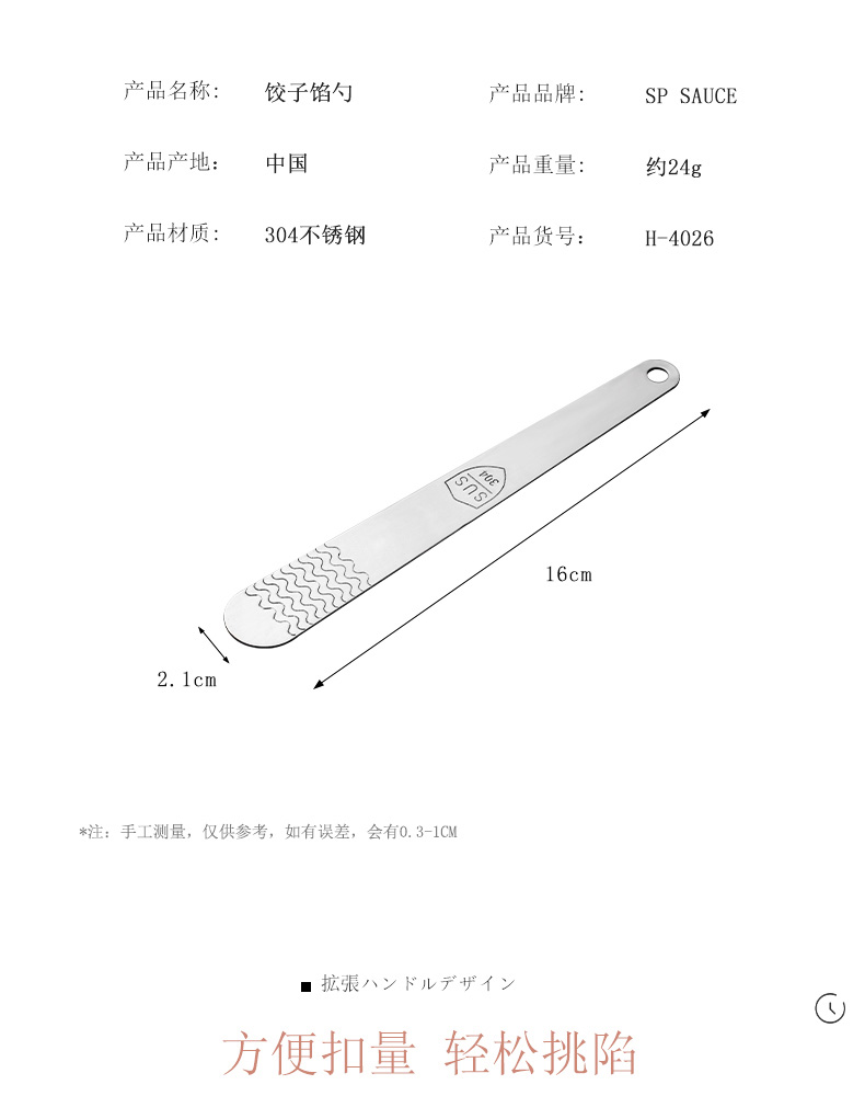 饺子馅勺 304不锈钢饺子馅勺包饺子混沌包子工具馅料搅拌勺子馅挑厨房神器
