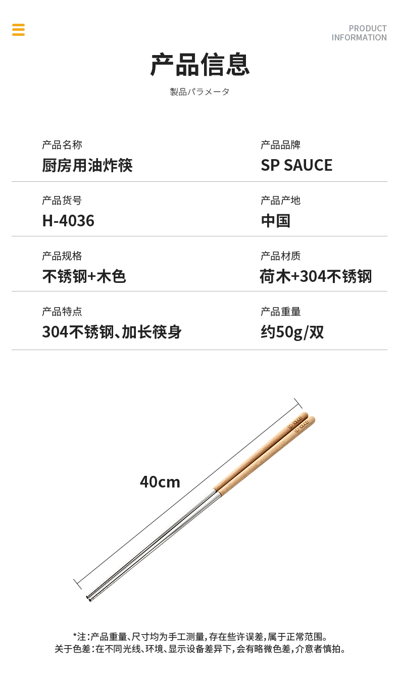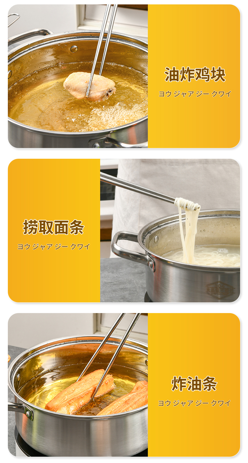 厨房用油炸筷 304不锈钢荷木木加长款火锅油炸筷子家用捞面厨房油条筷子