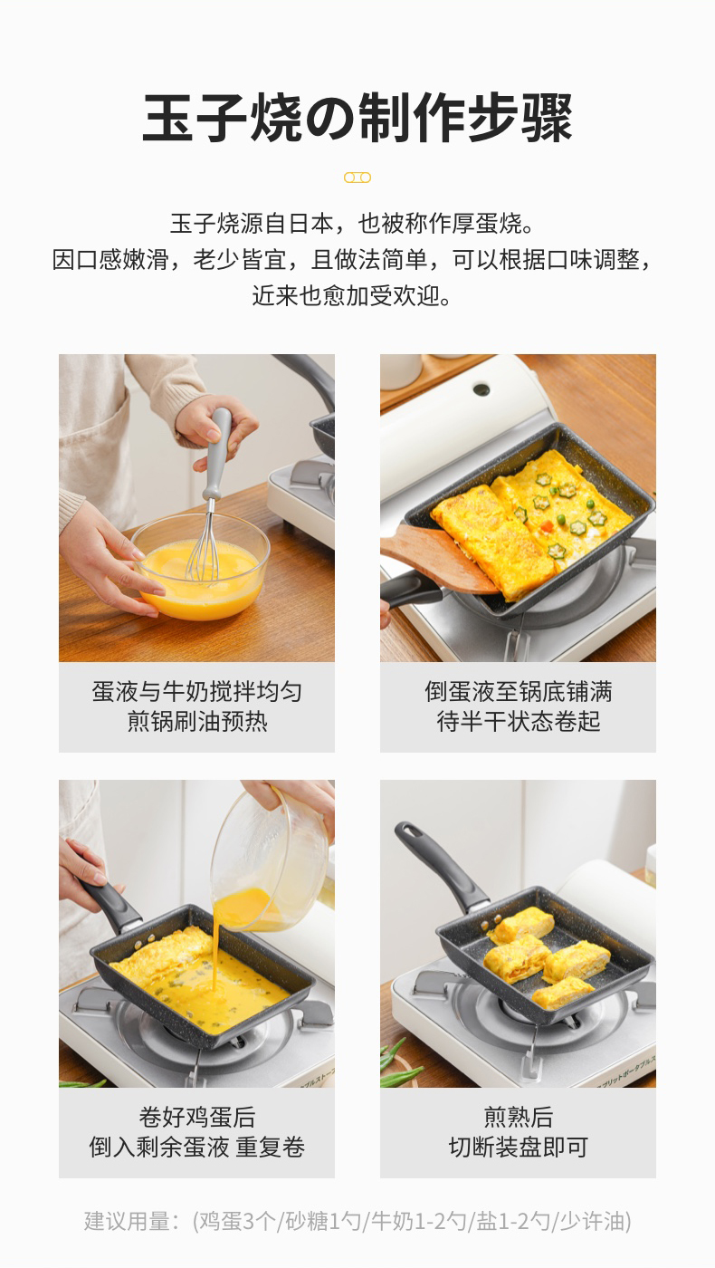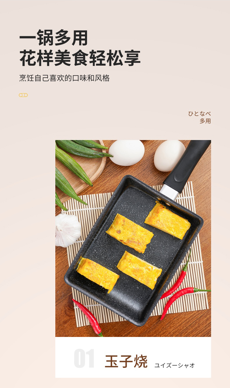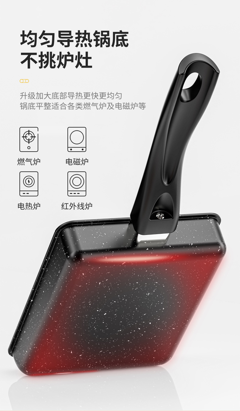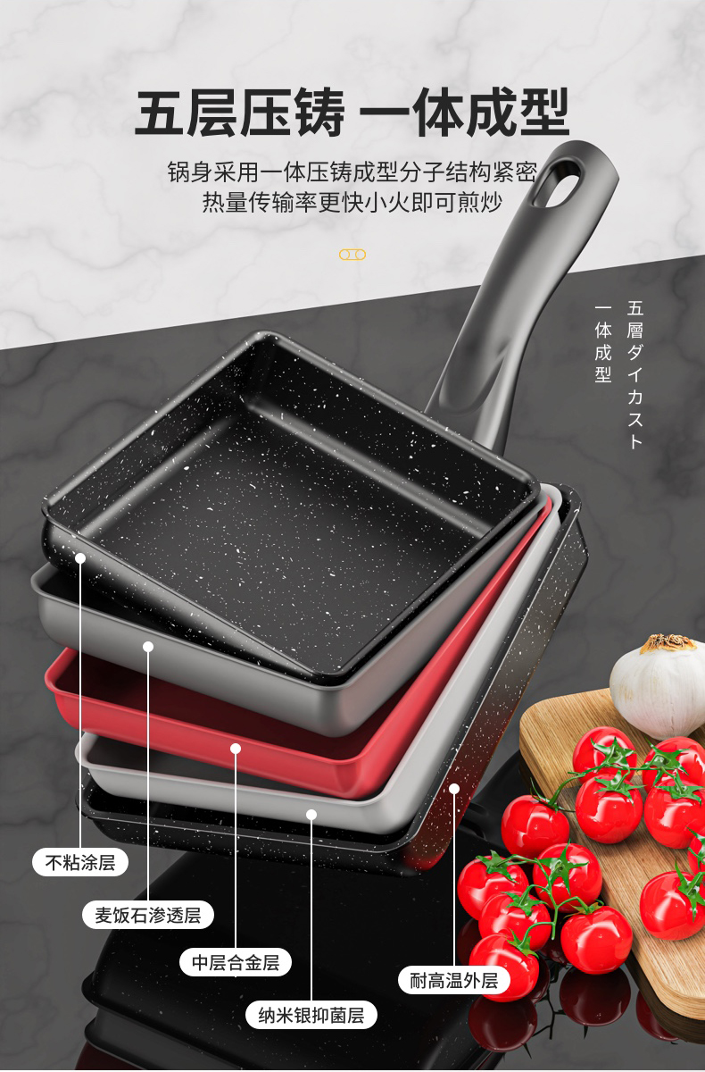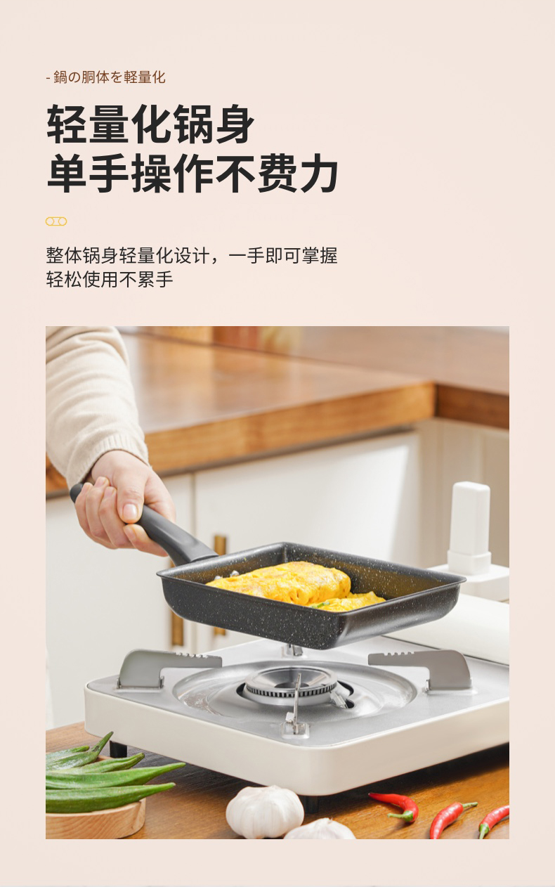 D 玉子烧煎蛋锅 玉子烧方形迷你锅厚蛋烧小煎锅煎蛋家用平底早餐锅