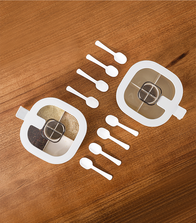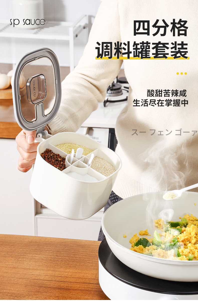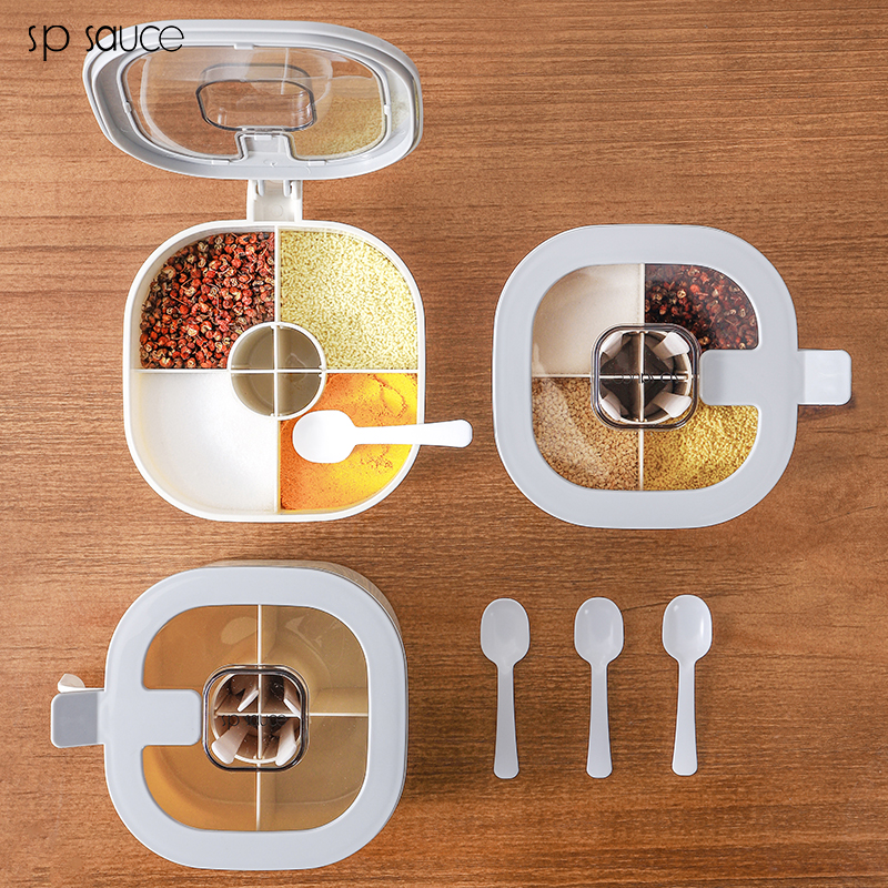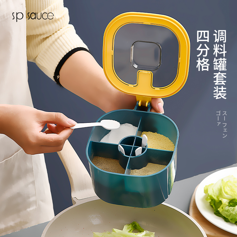 D 四分格调料罐 厨房调料盒组合套装四格一体盐罐家用多格带盖收纳调味盒