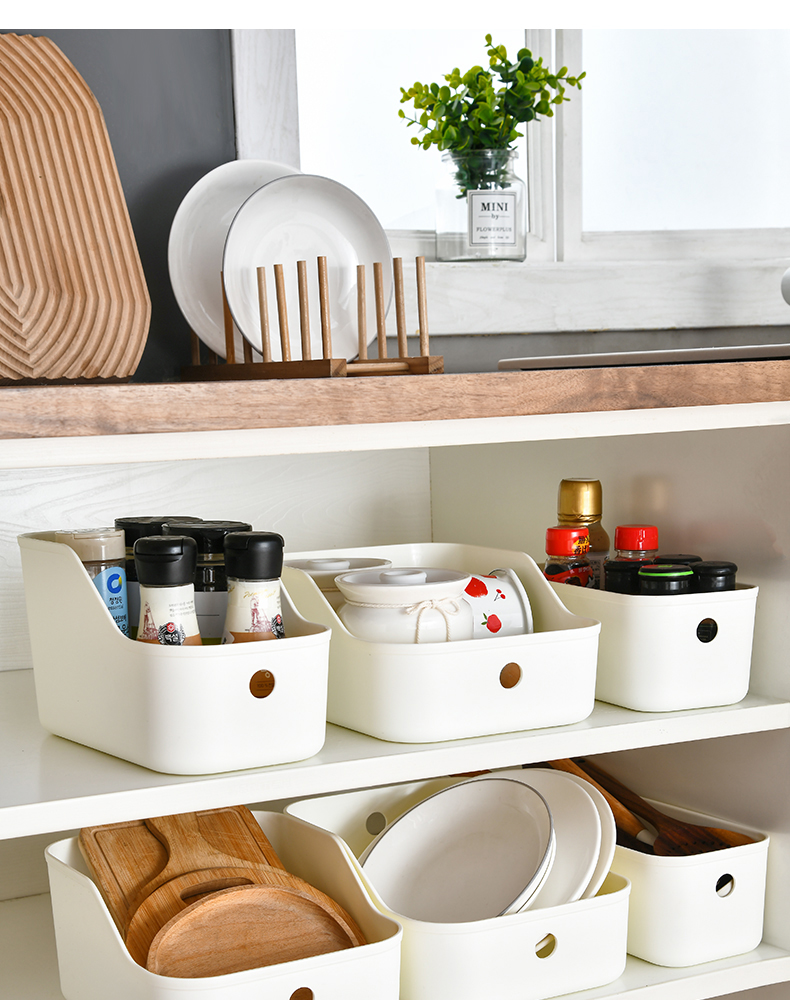 圆点收纳盒(中号) 桌面收纳盒办公桌整理箱家用收纳筐浴室用品盒子内衣整理盒化妆品收纳篮