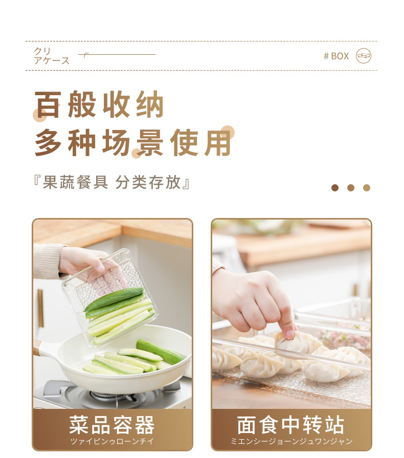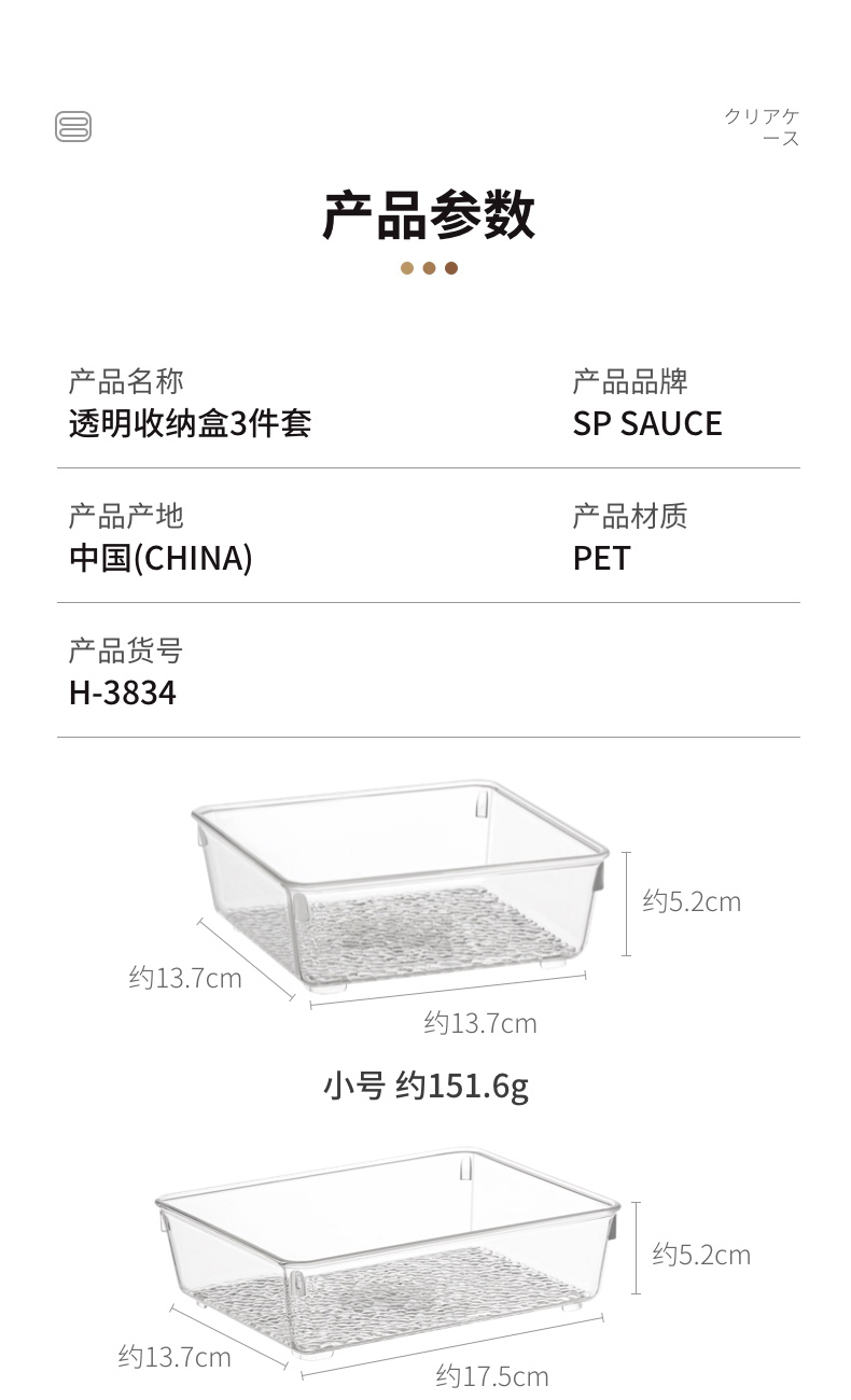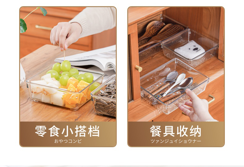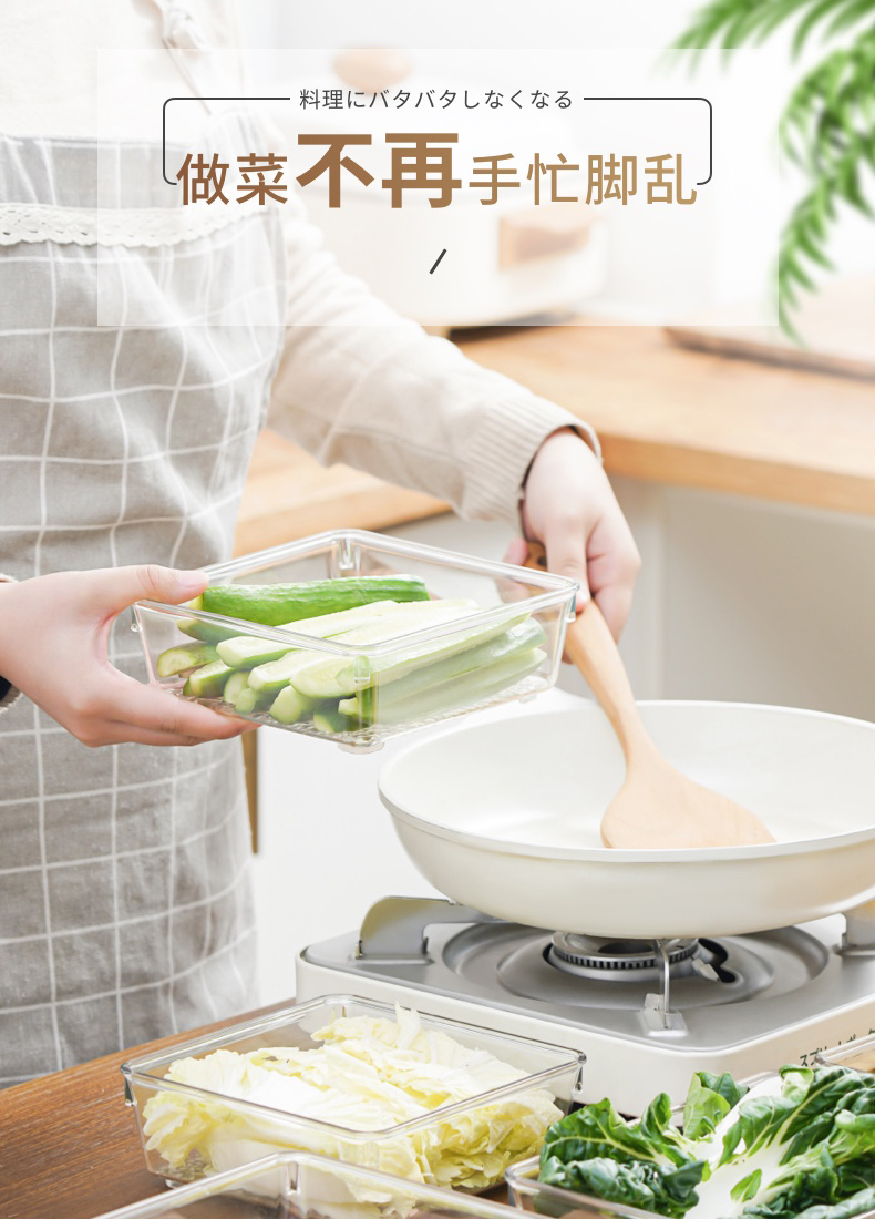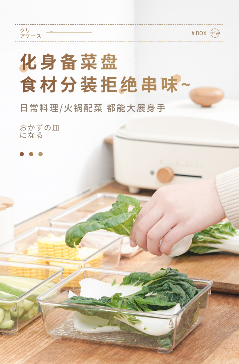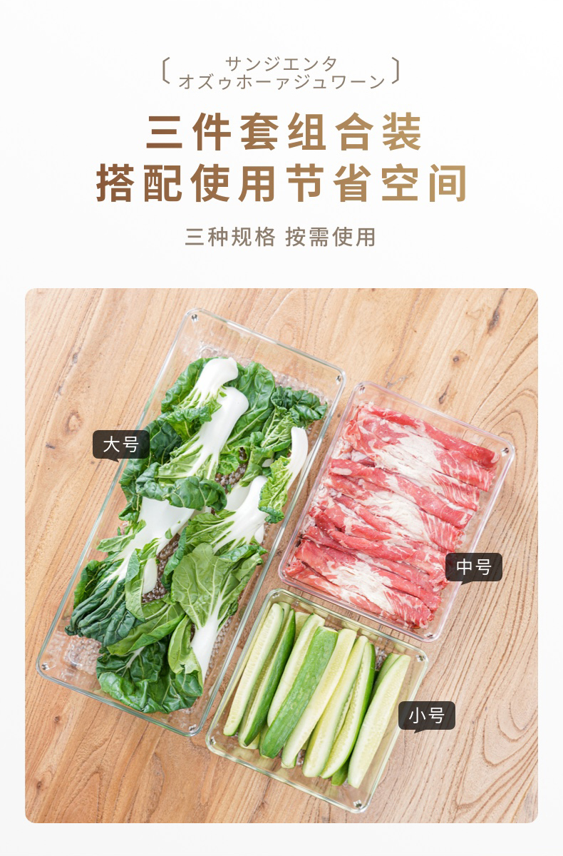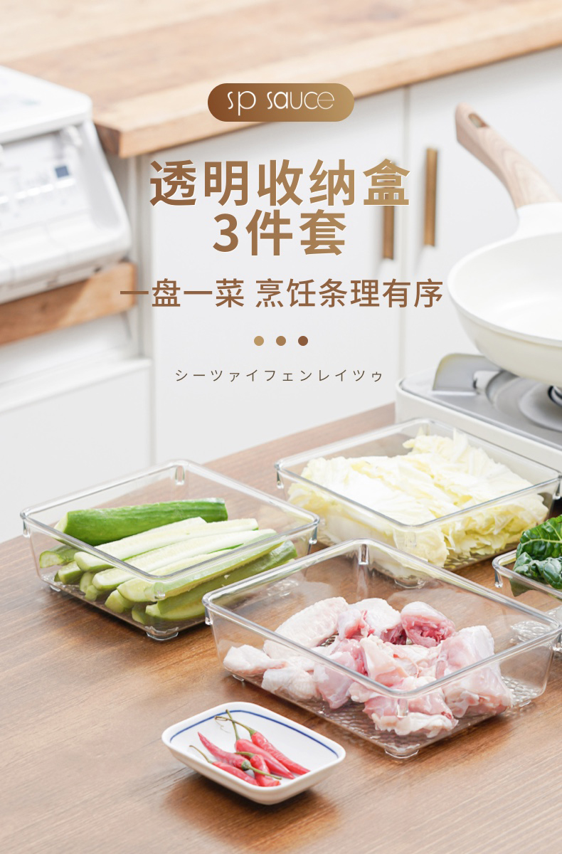 D透明收纳盒3件套 备菜热卖 长方形多功能厨房大容量收纳盒备菜盒水果零食盘