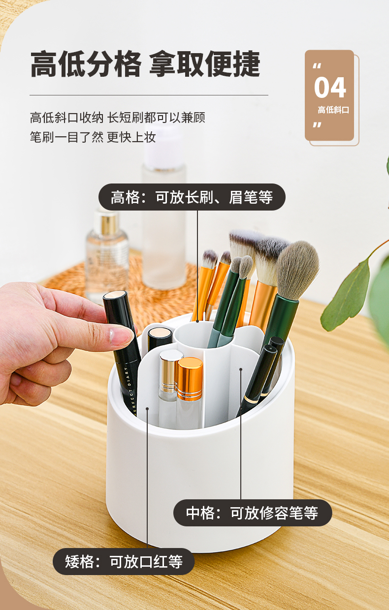 D 化妆刷收纳盒(旋转款) 旋转化妆刷筒眼线笔刷子化妆笔收纳桌面化妆刷收纳筒口红收纳盒