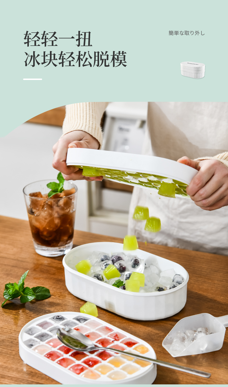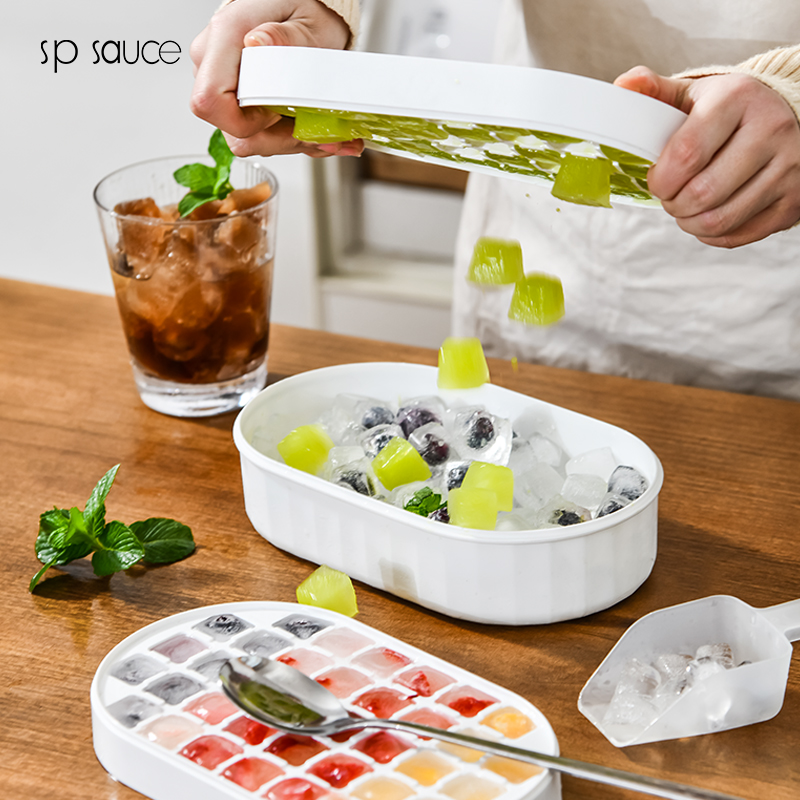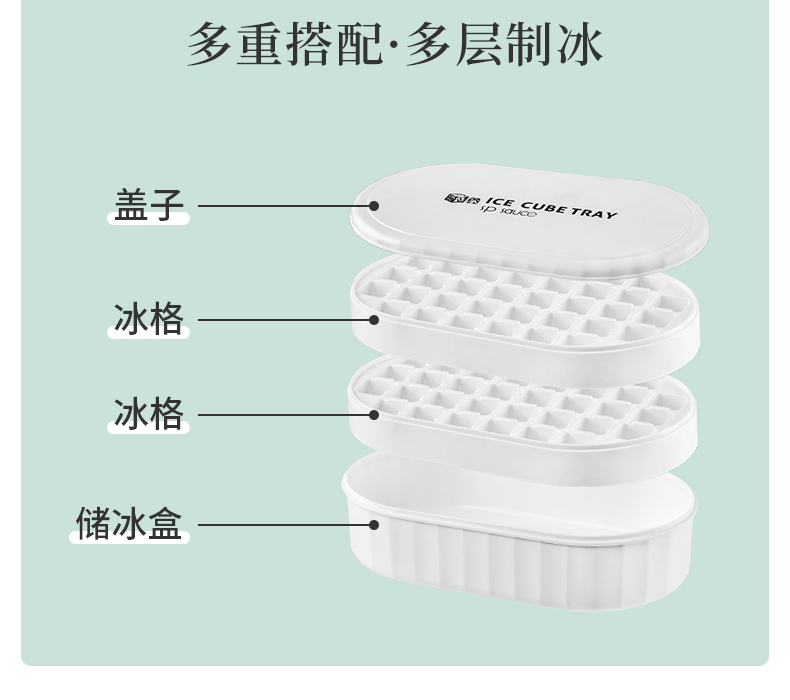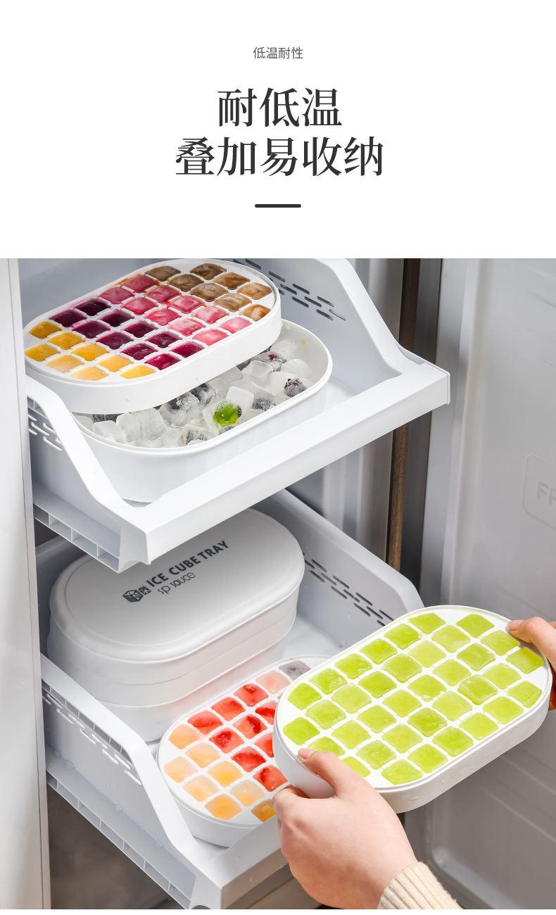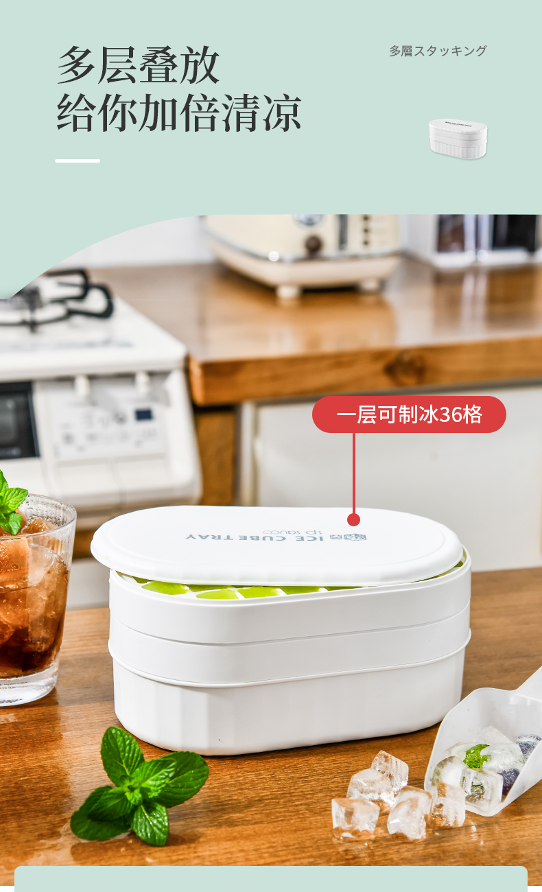 2层72格冰格 (配冰铲) 冰块模具带盖冰块盒模型冰格带冰铲制冰器冰箱冻冰模具储冰盒