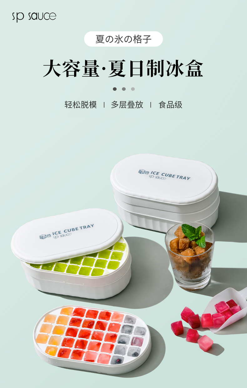 单层36格冰格 (1层+1盖) 冰块模具冰格制冰盒塑料冰块制作器带盖防尘冰箱冻冰块模具